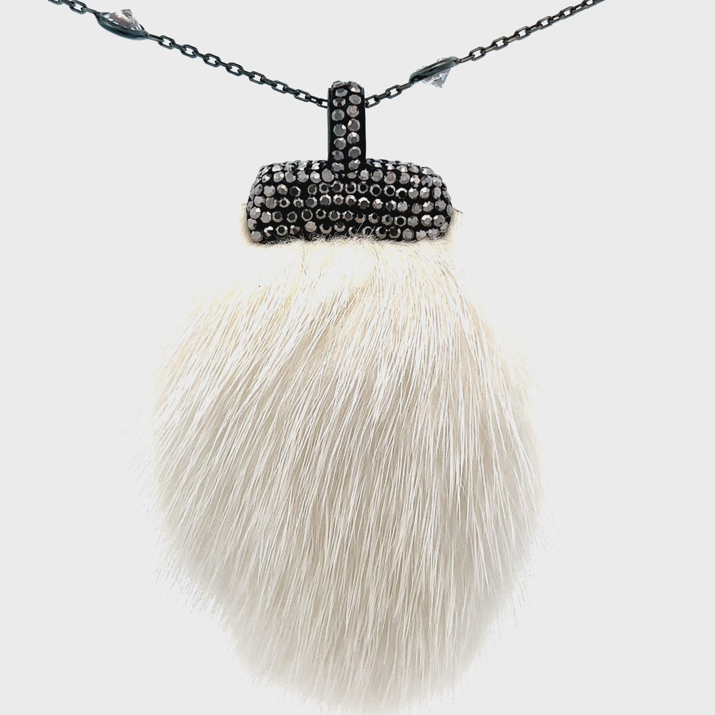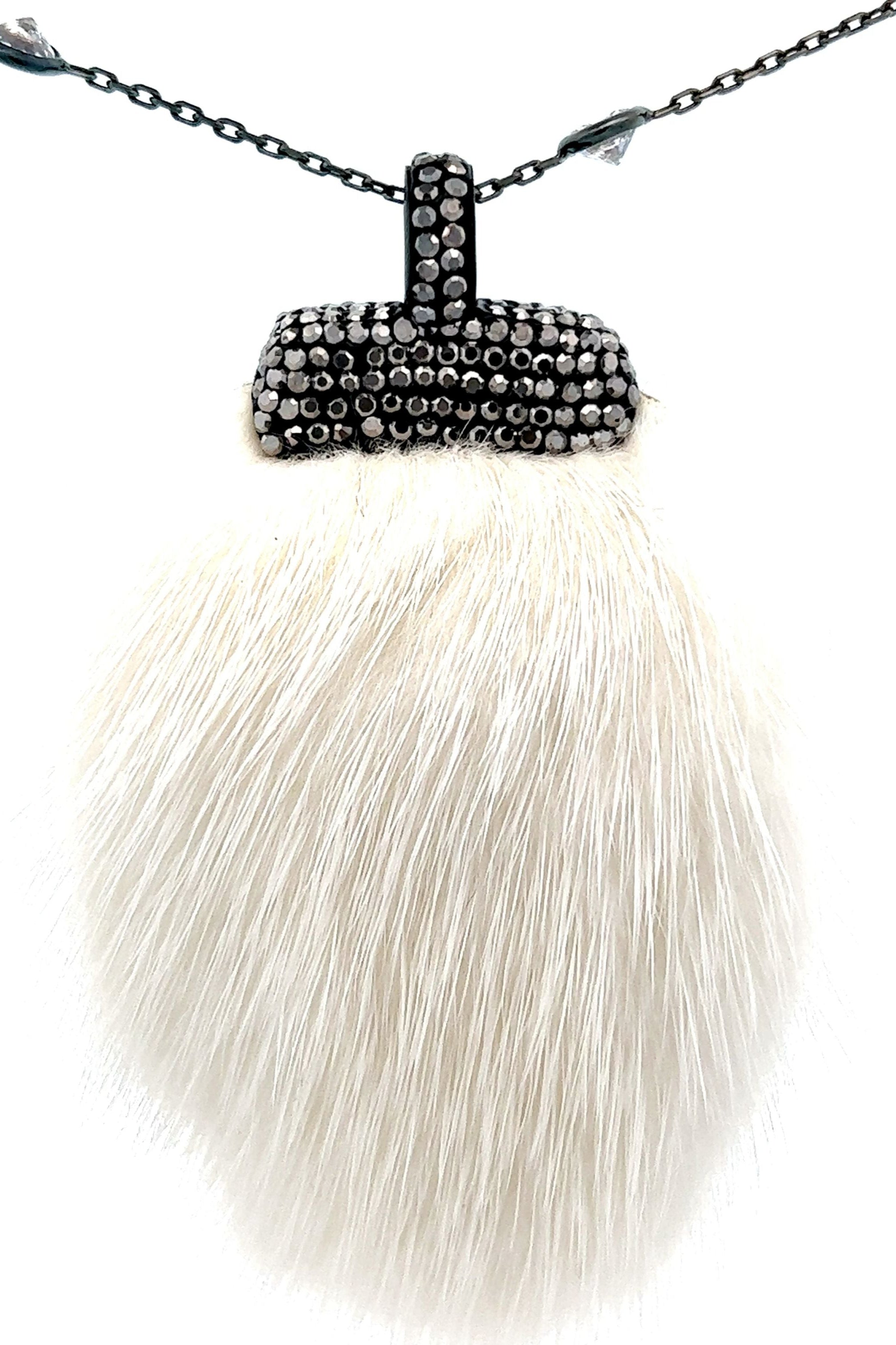 Adorn yourself in sophistication with our White Luxe Fur Crystal Pendant Sterling Silver CZ Necklace—a harmonious fusion of luxury and timeless elegance. The pendant features plush white fur, gracefully encased by dazzling crystals, all suspended from a sterling silver chain set with cubic zirconia adding a touch of sparkle and refinement to the piece. Ideal for both formal events and everyday glamour, this necklace combines the plush softness of fur with the brilliance of crystals, creating a unique accessory that effortlessly elevates your style with grace and sophistication.