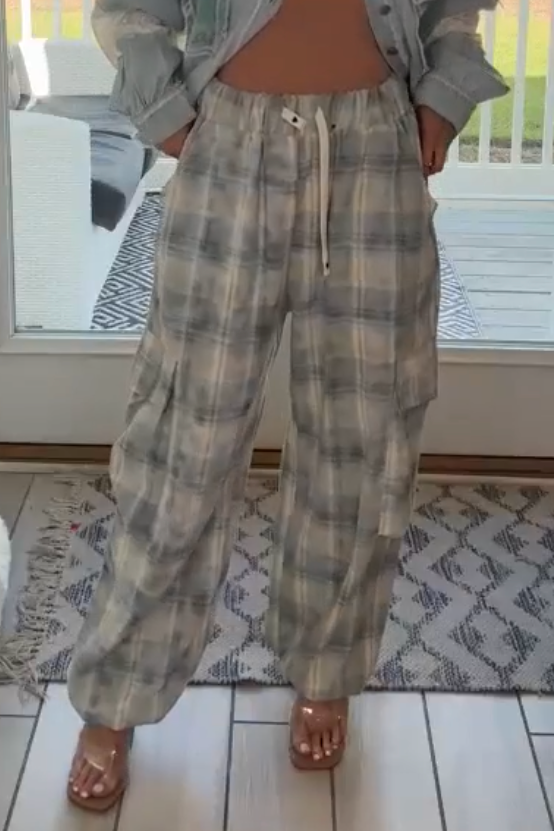 Ash Blue Multi Woven Cargo Pants By Pol Clothing. Designed in pants*Clothing, Woven