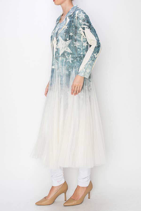 Experience the perfect blend of style and comfort with our Beige Star Tulle Blazer Cardigan from Origami Apparel. This cardigan blazer is a unique addition to any wardrobe, featuring a long mesh layer that adds a touch of elegance and distinction. Designed with the modern woman in mind, it is a versatile piece that can transition effortlessly from day to night, office to outing. Drawing inspiration from lace and crochet, it aligns perfectly with our brand ethos of creating stylish, on-trend, and classic pieces. It's more than just outerwear, it's a statement.