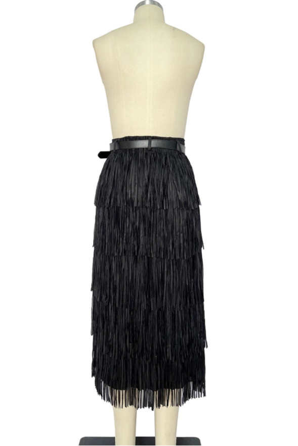 Embrace your adventurous side with our Fringe Layered Skirt! Made with stretchy material, this long skirt features flowy fringes that add movement and style to your outfit. Perfect for any daring fashionista, grab yours now in sizes ranging from small to large.
