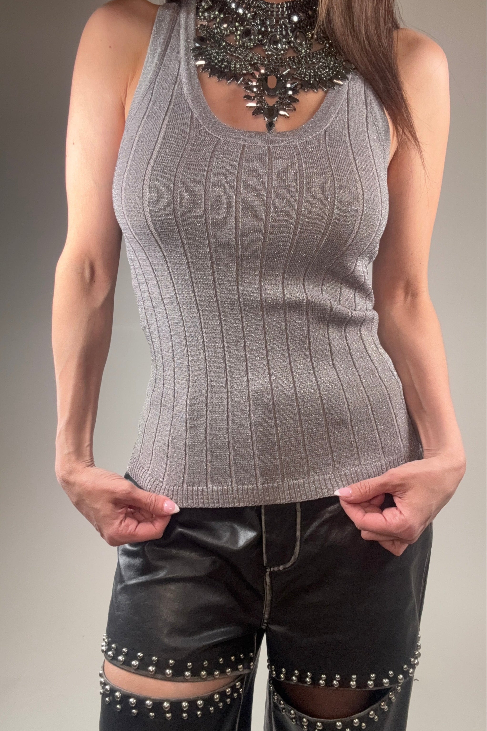 The Metallic Tank comes in a sleek metallic finish, available in both elegant grey and stunning pink. Made with high-quality material, this tank adds a touch of sophistication to any outfit. Elevate your style with this versatile and stylish piece.