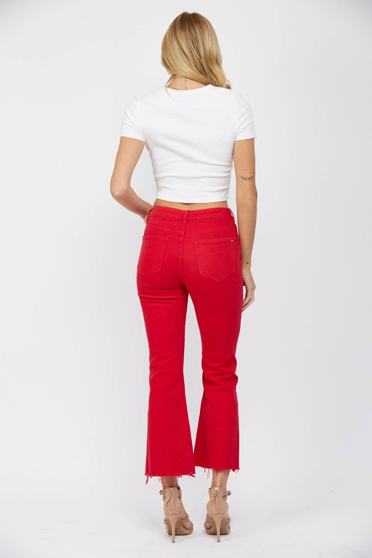 Immerse yourself in the laid-back California cool vibe with our HIGH RISE ANKLE FLARE jeans from Mica Denim. These jeans embody the rich tradition of denim with a trendy twist, appealing to all denim enthusiasts. With a high-rise waist and a fashionable flare at the ankles, they seamlessly blend innovation with timeless styles.