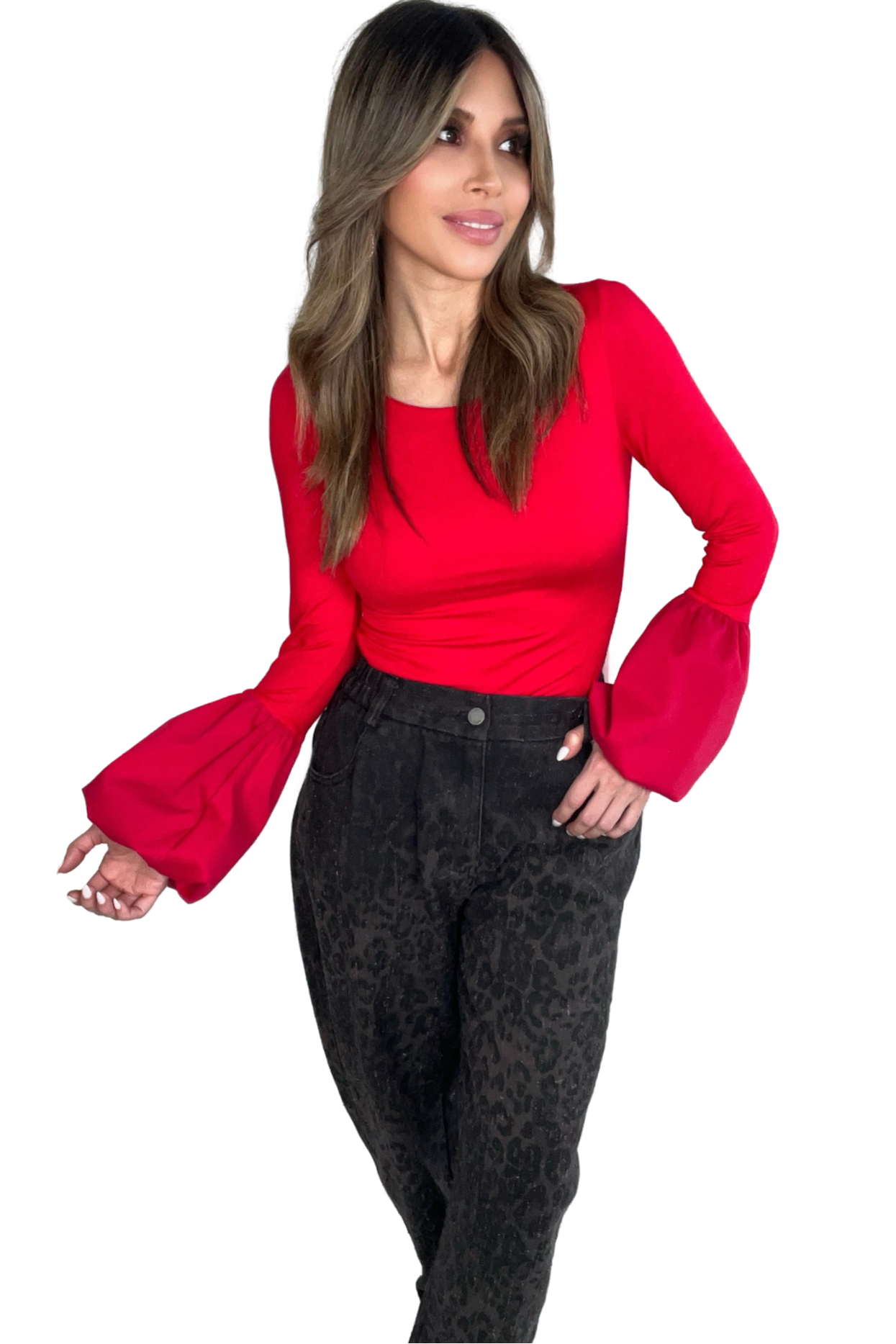Boost your style with our Red Bubble Sleeve Top! Made with soft stretch material and double lined, this top features an eye-catching bubble sleeve design in a bold and vibrant red. Stand out and make a statement wherever you go. Don't miss out on this daring and stylish top!