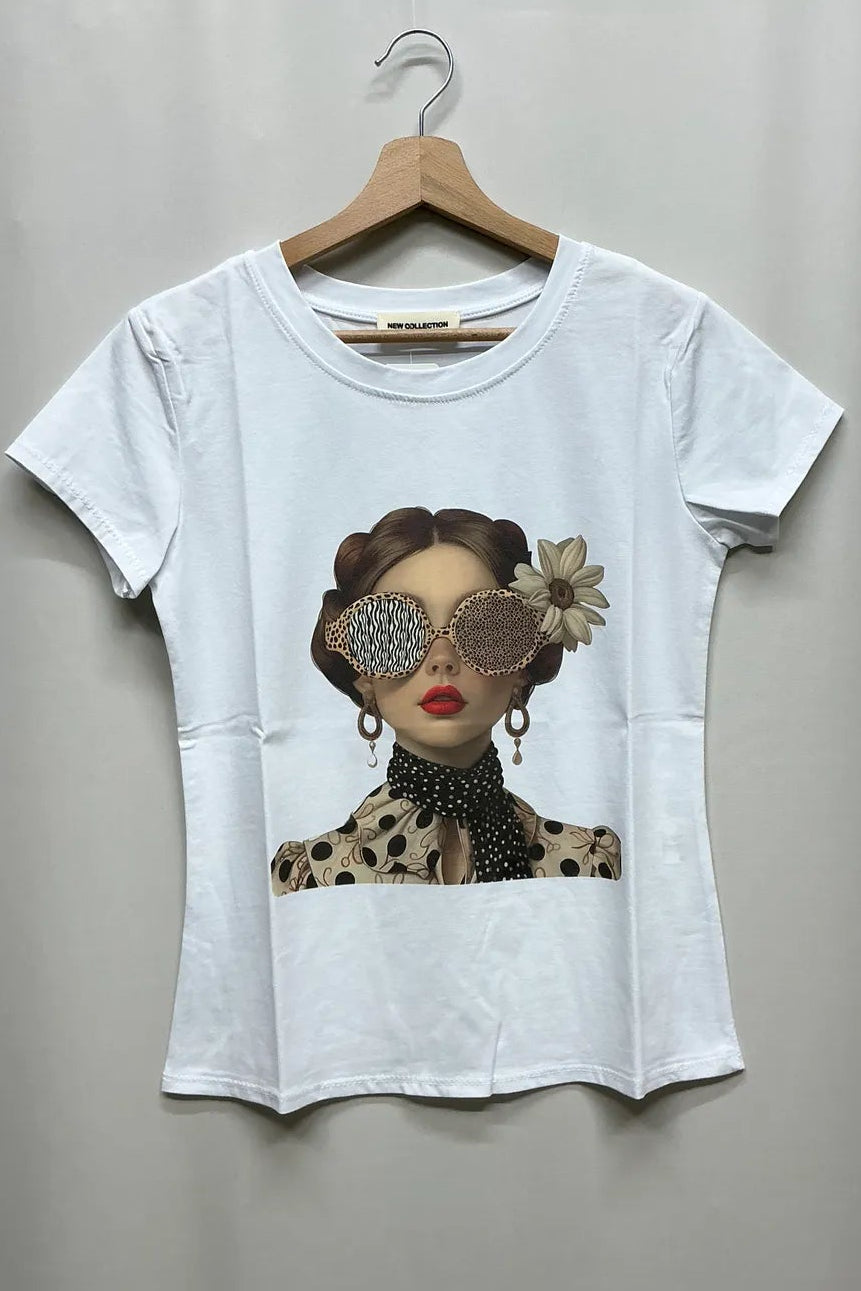Elevate your everyday style with this chic girl print white t-shirt — the perfect blend of elegance and modern glam. Featuring a stylish illustrated design with bold details, this piece adds a sophisticated statement to your look.
