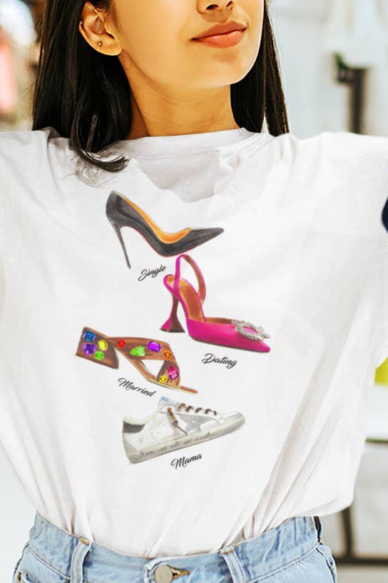 The circle of life, shoe edition! This designer inspired tee is fun, unique, and fabulous. Wear it casual, or dress it up! There are so many options for this staple piece. Makes a great gift for your fashion forward friend.