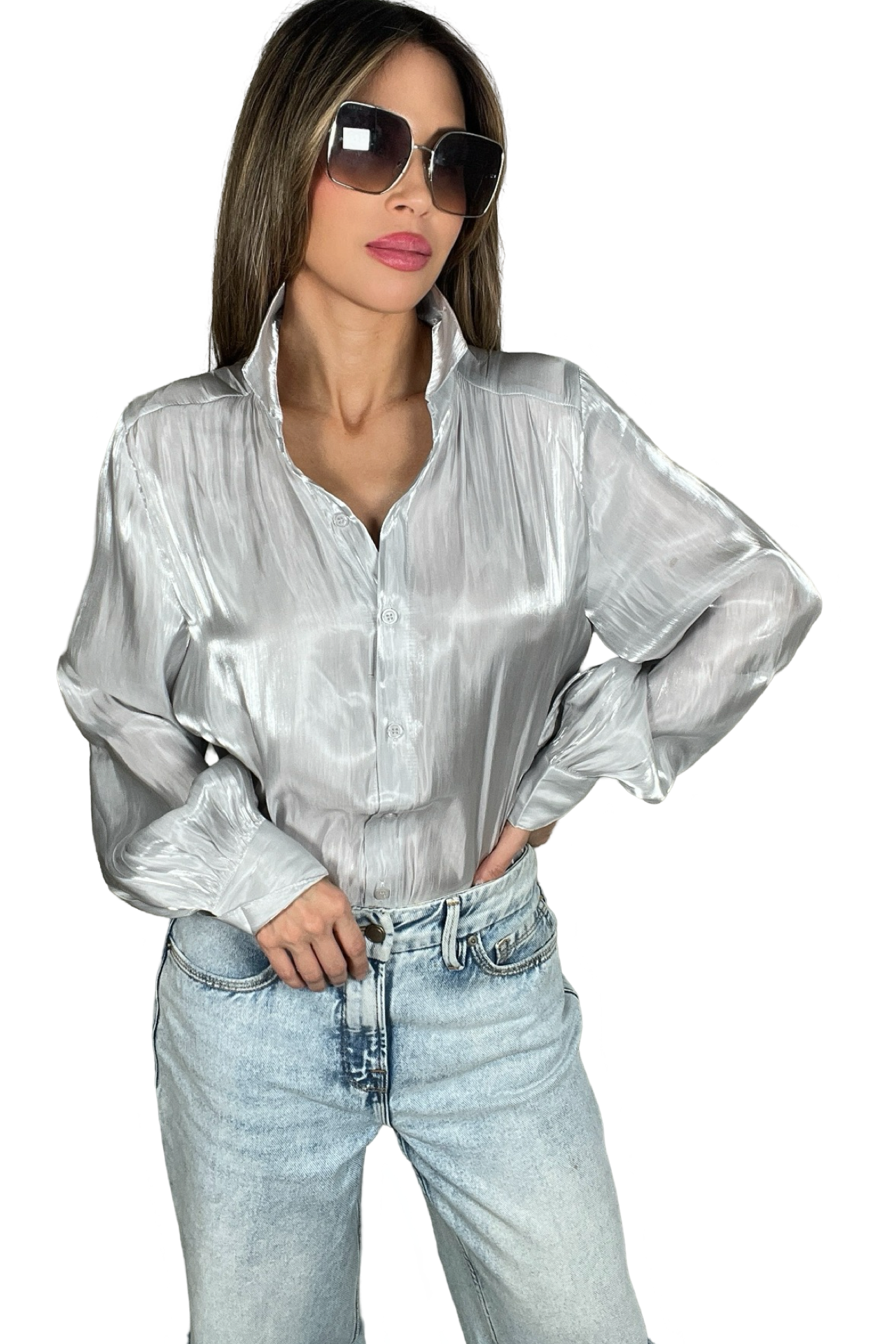 Unleash your daring side with our Iridescent Button Down Top! This top features an eye-catching sheen that will make you stand out from the crowd. With its button down design, you can easily dress it up or down for any occasion. Take the risk and add some sparkle to your wardrobe today!