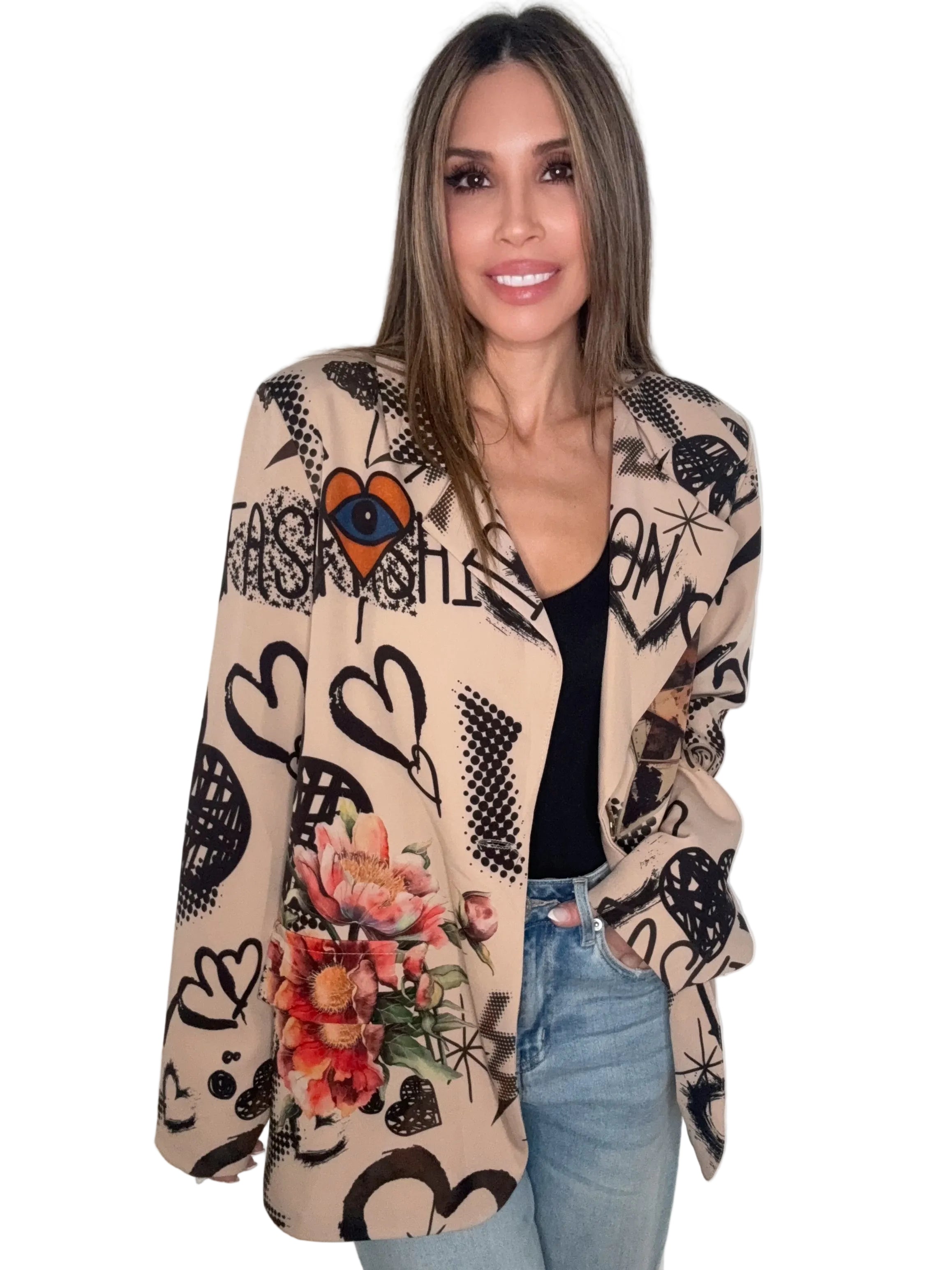 Floral Hearts Taupe One Size Blazer