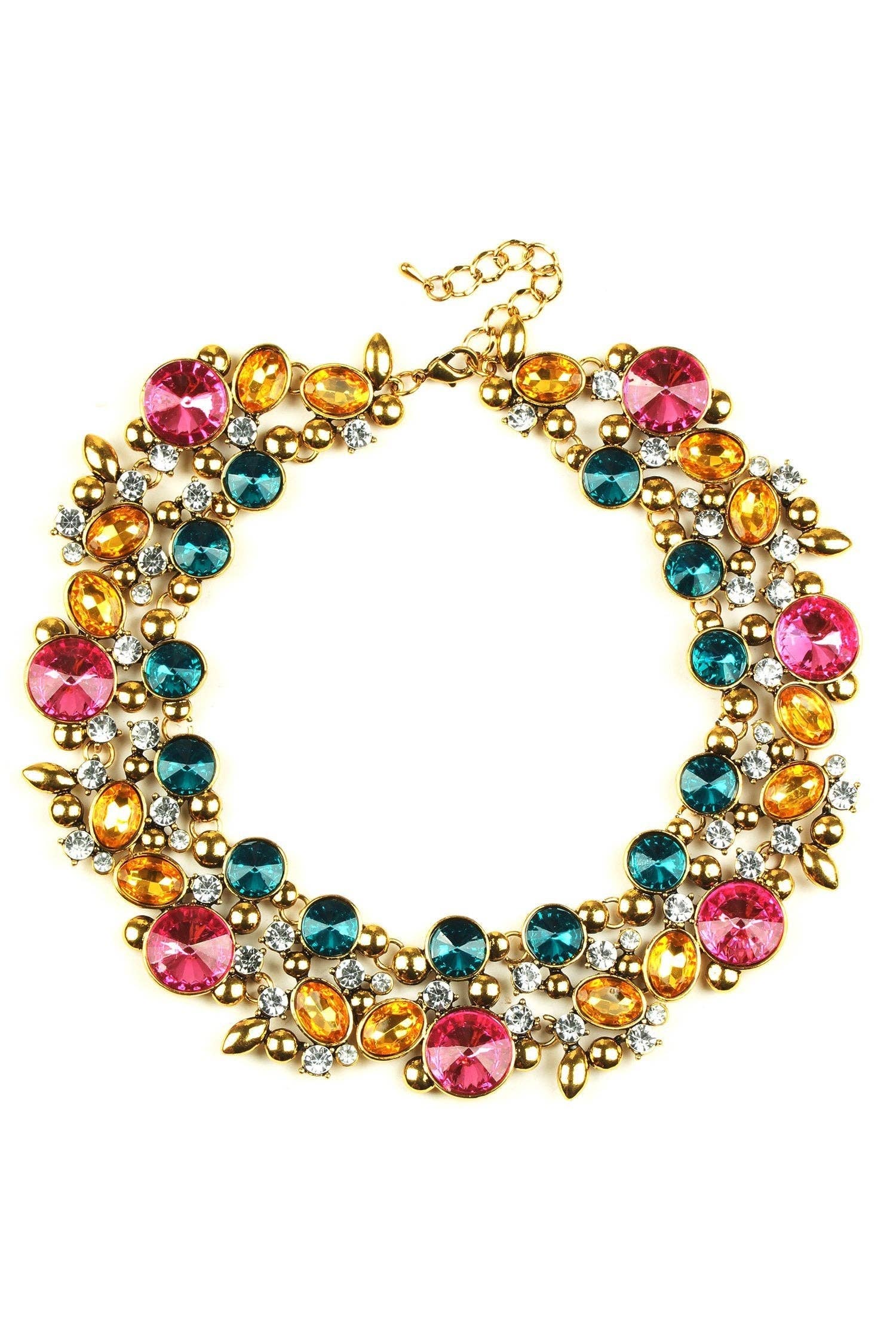 Shine bright with the Multi Color Statement Necklace. Perfect for elevating any casual outfit with rainbow crystals and geometric design.