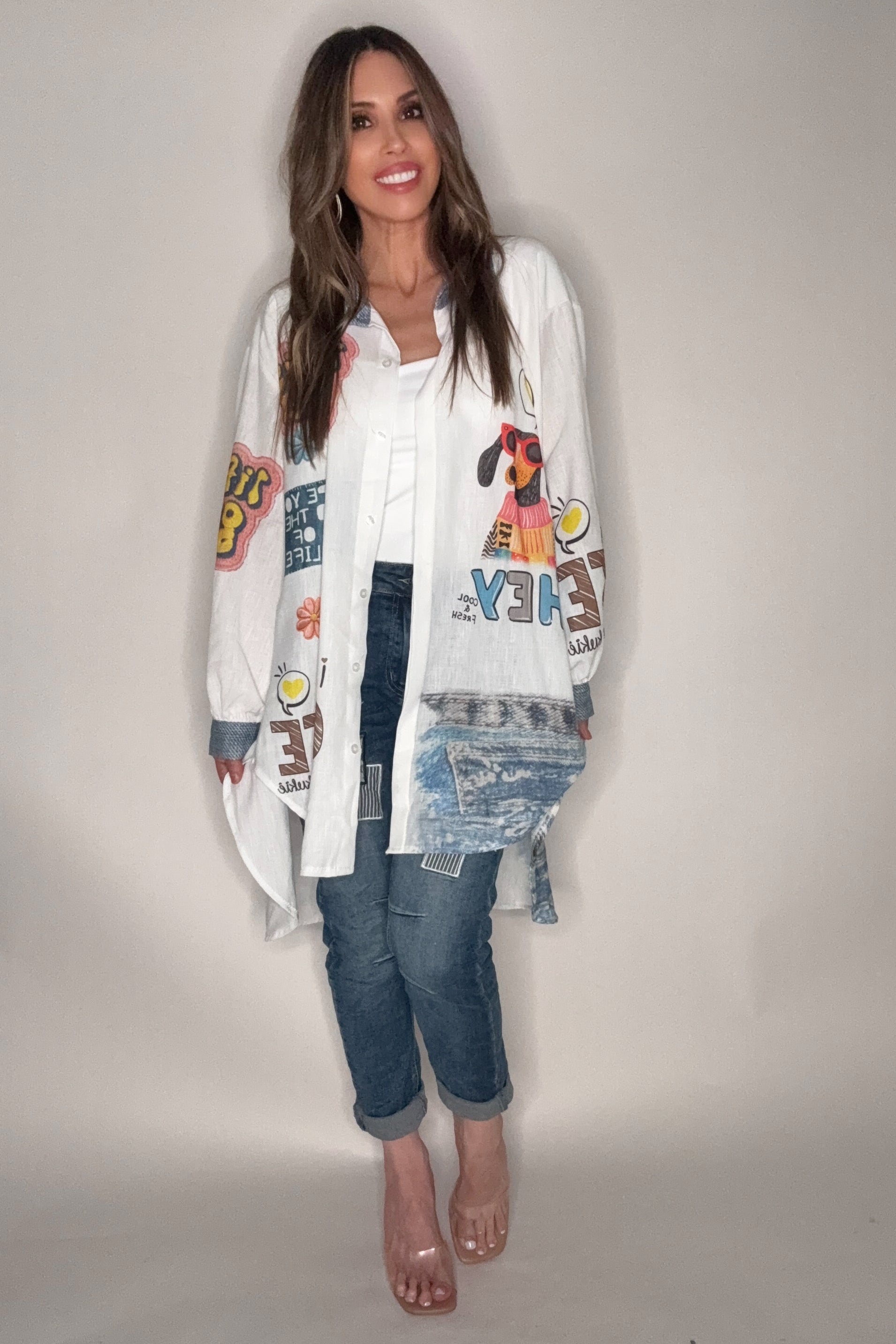 Effortless, comfy, and full of good vibes — the One Size Life Is Good Graphic Oversized Shirt Dress is the ultimate throw-on-and-go piece for casual days. Designed with a relaxed oversized fit, this shirt dress combines the comfort of your favorite tee with the effortless style of a mini dress.