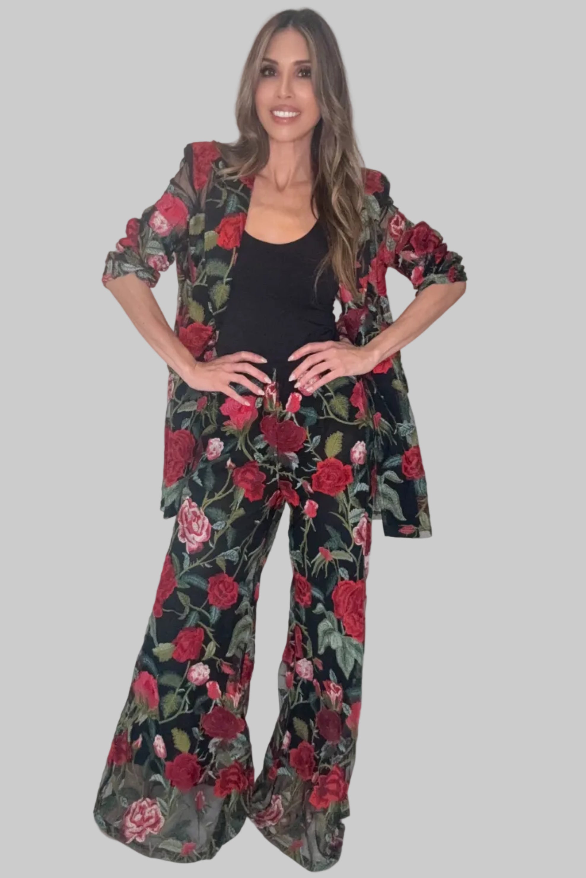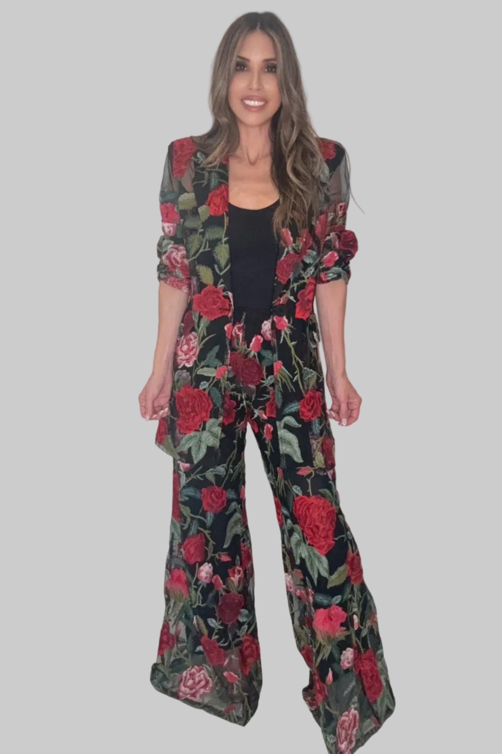 Make a statement with this striking Red Floral Lace Blazer that transforms any outfit into something unforgettable. The intricate lace detailing adds sophisticated texture and visual interest, while the bold red hue commands attention without demanding loudness. Perfect for elevating casual looks or adding edge to formal wear, this piece works as hard as you do—whether you're heading to the office, a night out, or anywhere in between. Versatile, eye-catching, and undeniably chic, it's the one piece that makes getting dressed feel effortless.