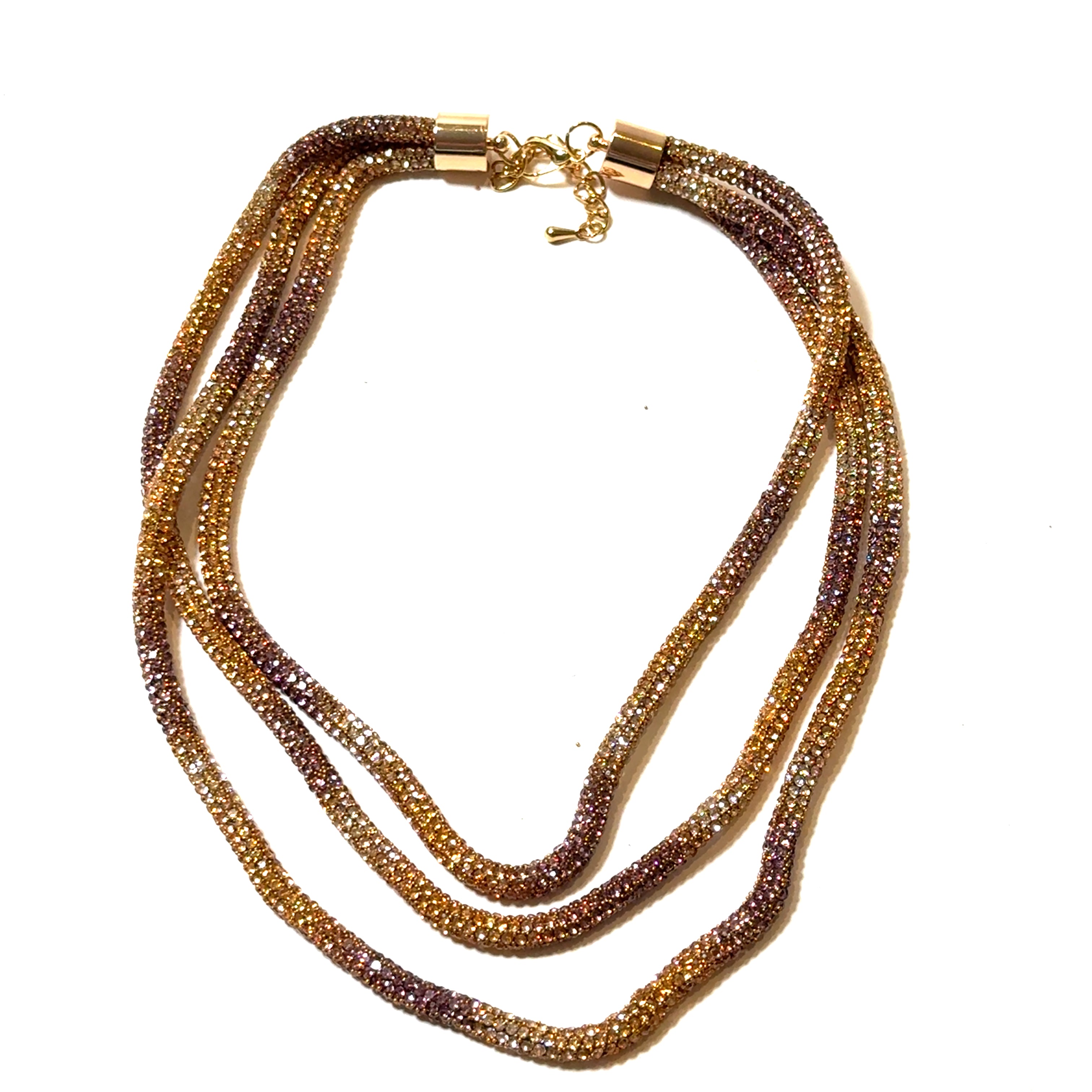 Rhinestone 3 Layer Tie Dye Multi-Strand Necklace
