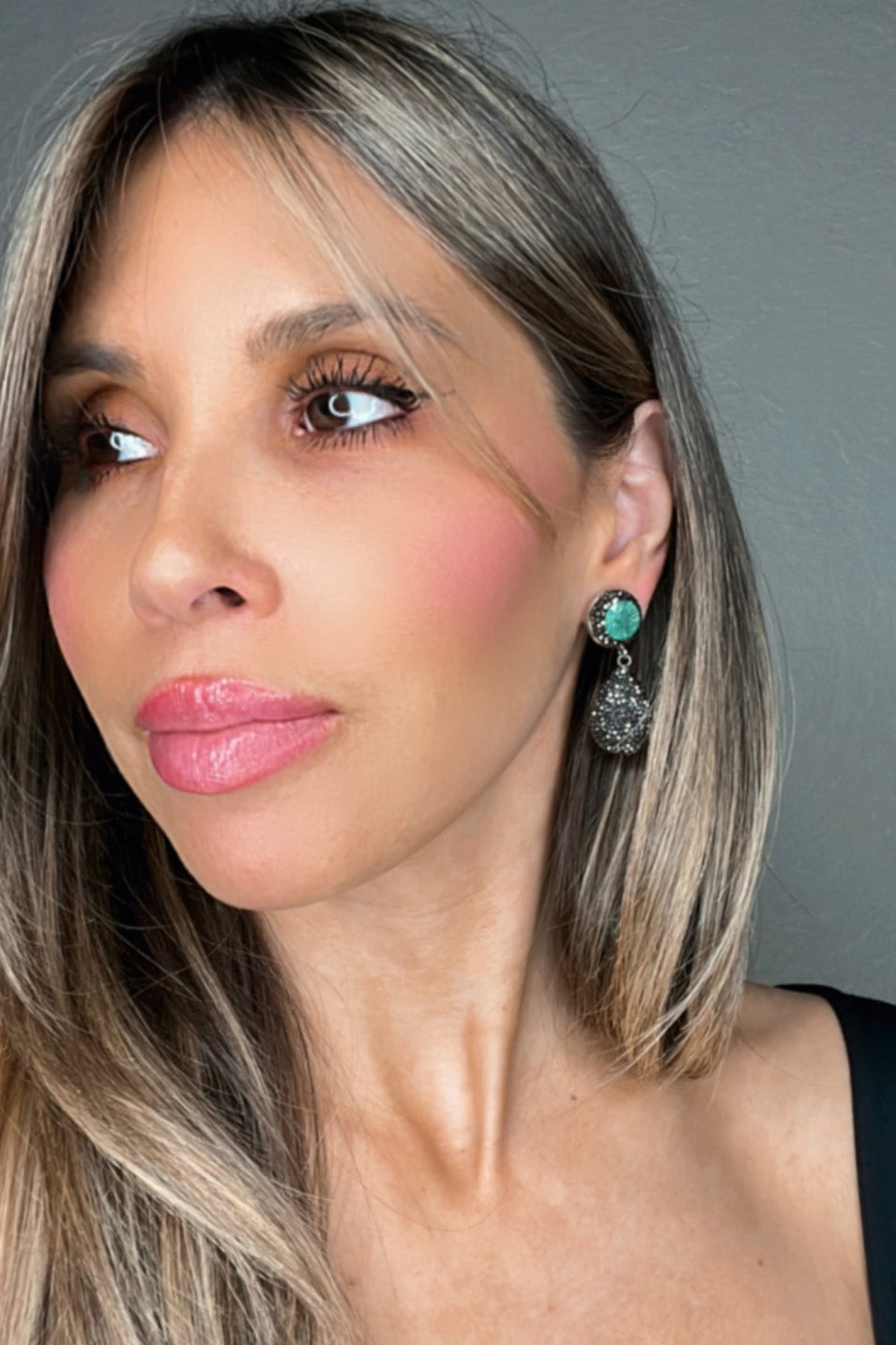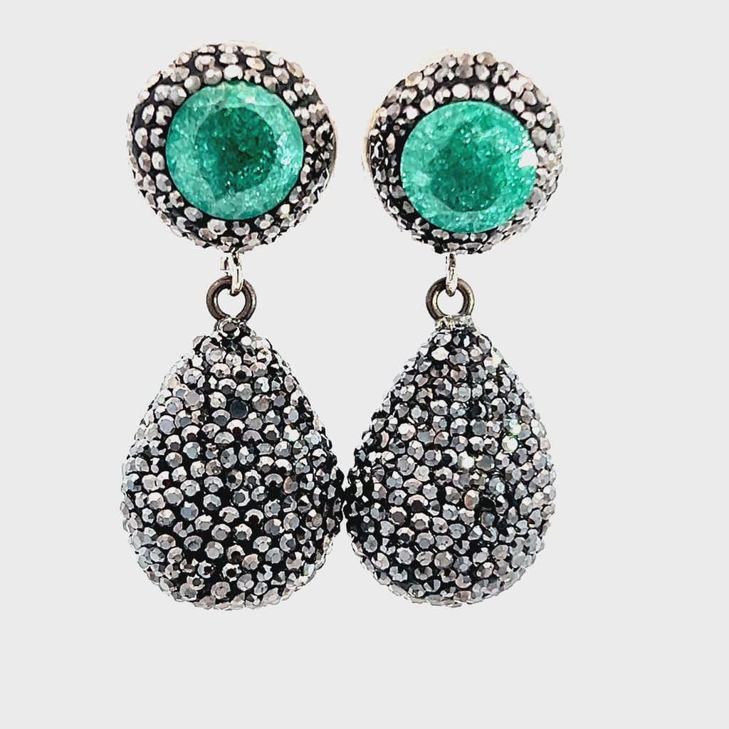 Elevate your look with our Silver Crystal Gemstone Sterling Silver Earring. These stunning earrings feature sleek silver crystals with a green quartz gemstone in an elegant drop design, creating a sophisticated and versatile accessory. Whether for a night out or a special occasion, these earrings add a touch of timeless beauty to any ensemble. Embrace the allure of black crystals and make a statement with these exquisite drop earrings.