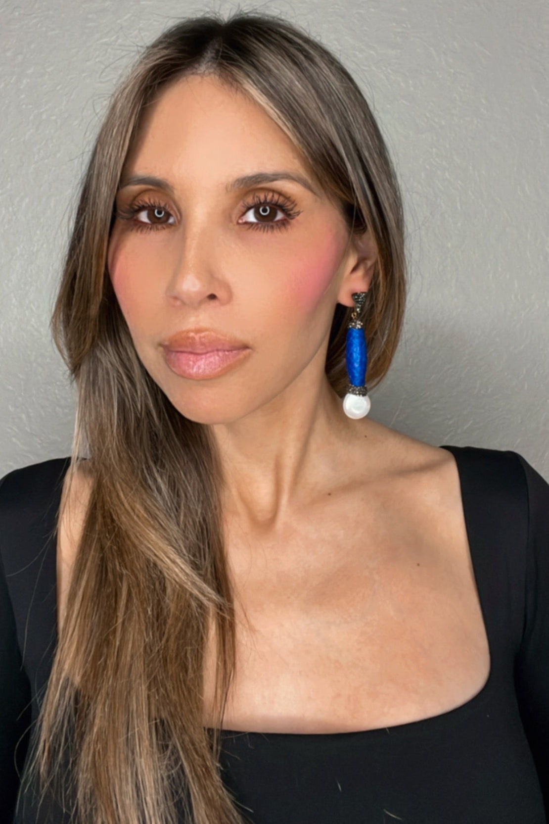 Elevate your style with our Blue Python Print & Pearl Drop Earring. This unique accessory features a captivating blend of blue python leather, lustrous pearls, and sparkling details, creating a statement piece that seamlessly blends exotic flair with classic elegance. The intriguing textures and contrasting elements add a touch of sophistication to your ensemble. Elevate your look effortlessly with the captivating allure of the Blue Python & Pearl Drop Earring—an exquisite addition to your jewelry collection, perfect for expressing your individual style with a hint of edgy glamour. Make a bold statement with this unique and trendy earring.