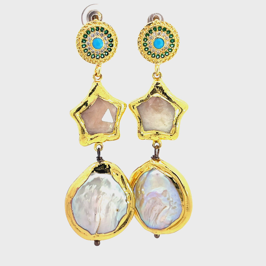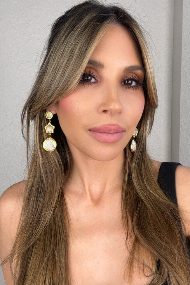 Elevate your look with these Brass Mother of Pearl Dangle Earrings. Featuring luminous mother of pearl accents set in warm brass, these earrings offer a timeless elegance that complements any style. Perfect for adding a touch of sophistication to your ensemble.