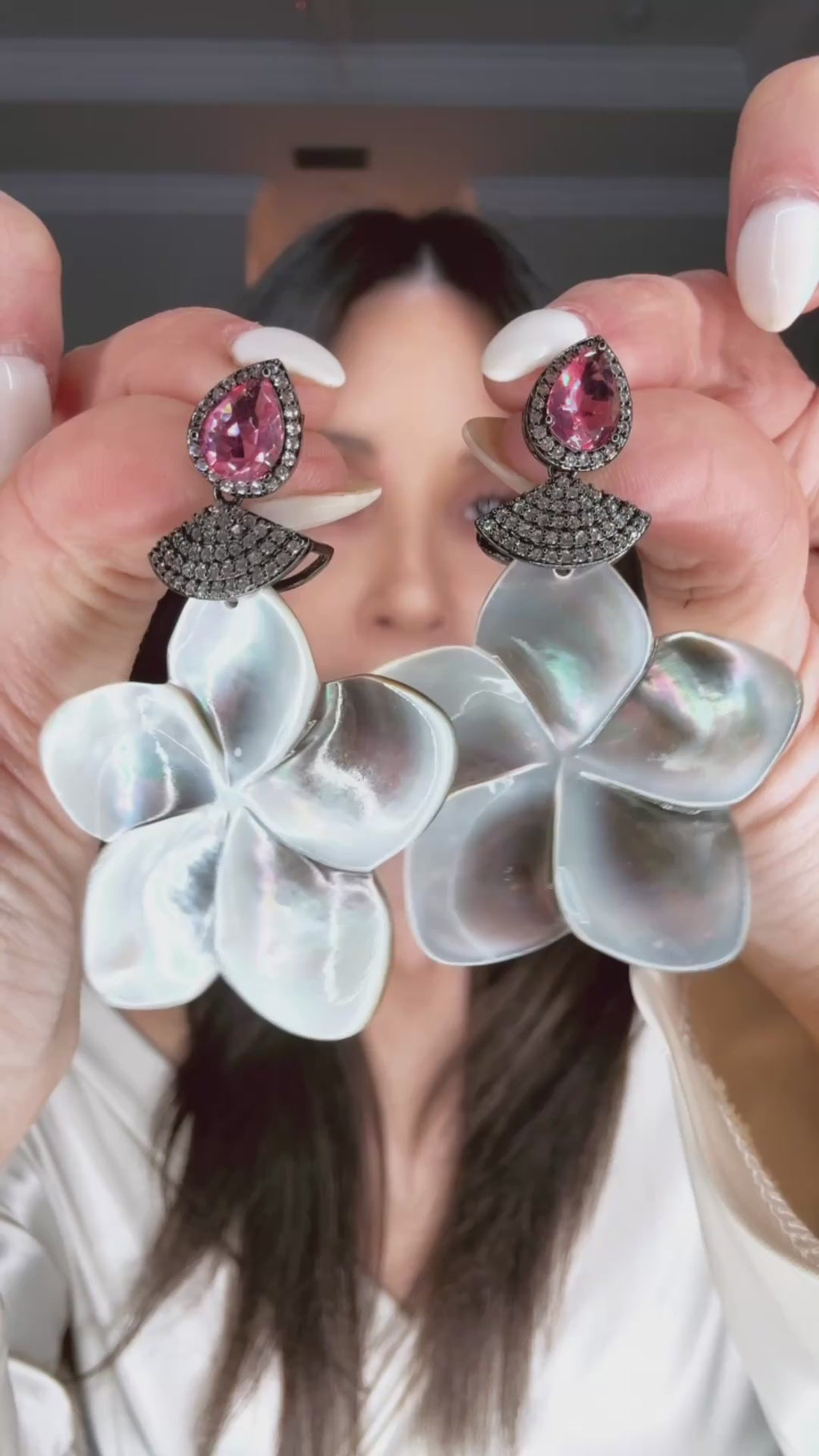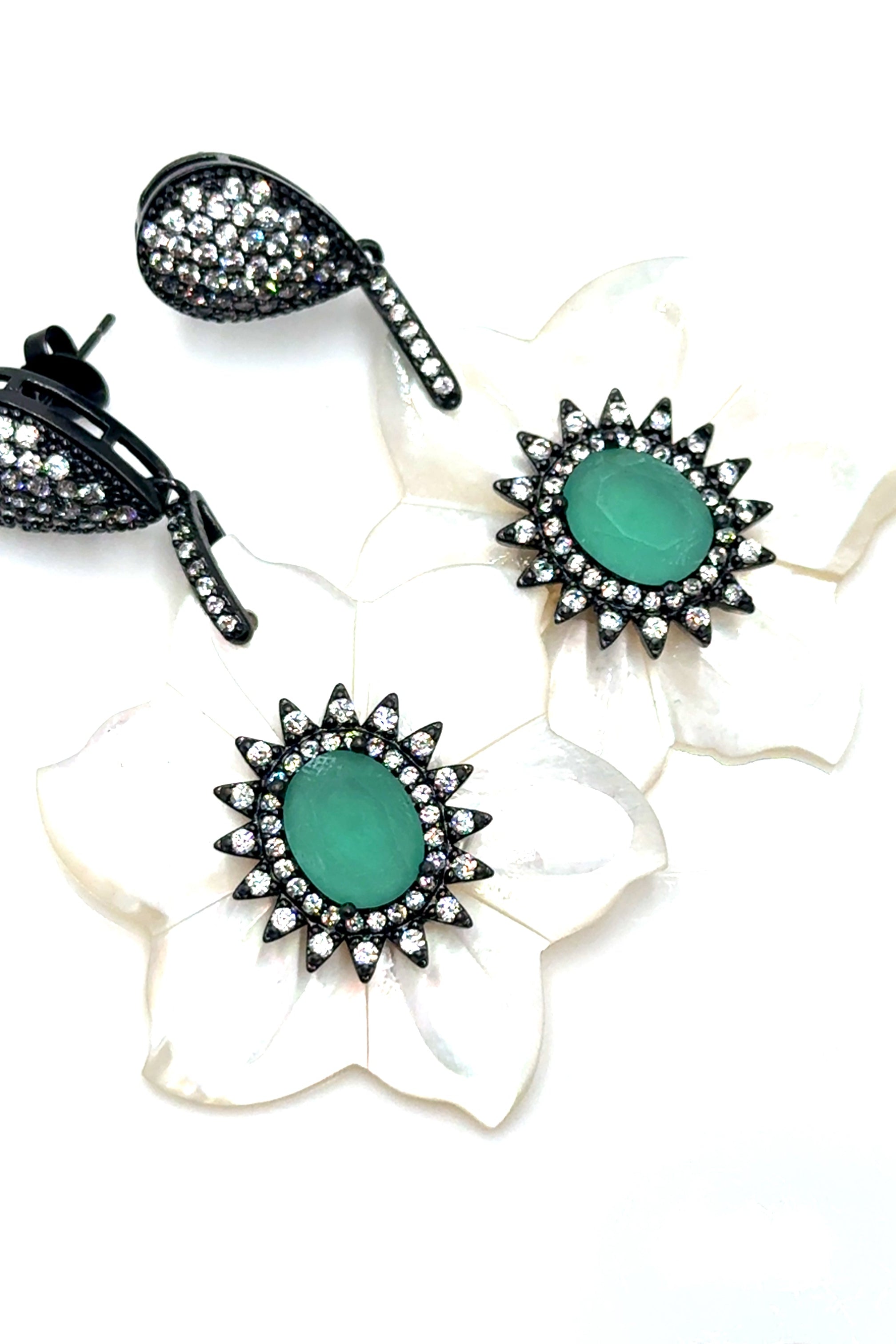 Unleash your delicate side with our Carved Mother Of Pearl Floral Drop Earring! These bold earrings feature stunning mother of pearl gemstones carved into a floral pattern paired with sparkling cubic crystals, all set on sterling silver post.
