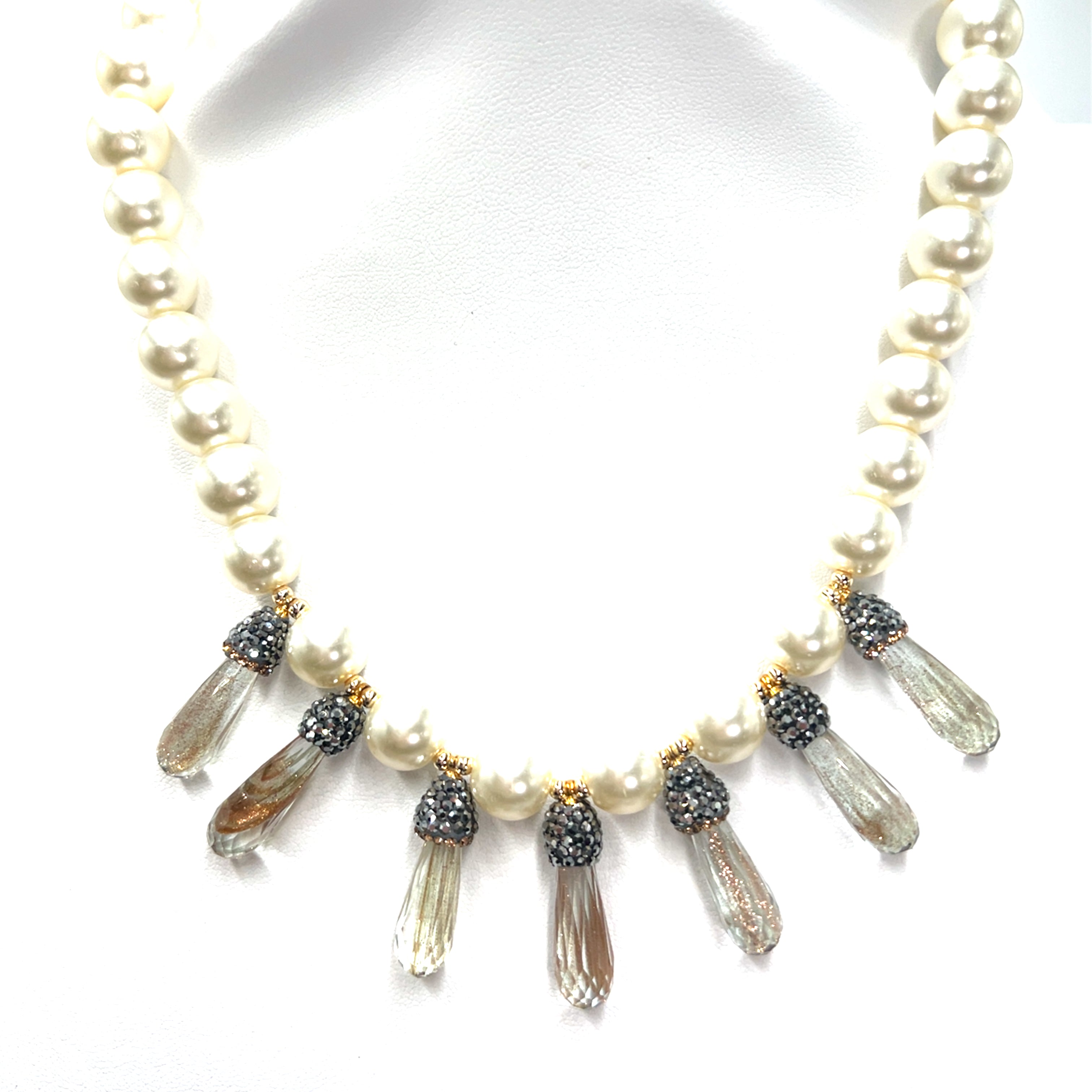 Take charge with our Cultured Pearl Crystal Necklace! Featuring an 18-inch cultured pearl strand accented with stunning crystal pins, this piece is perfect for the risk-taker in you. Wear it to make a bold statement and add a touch of adventure to any outfit.