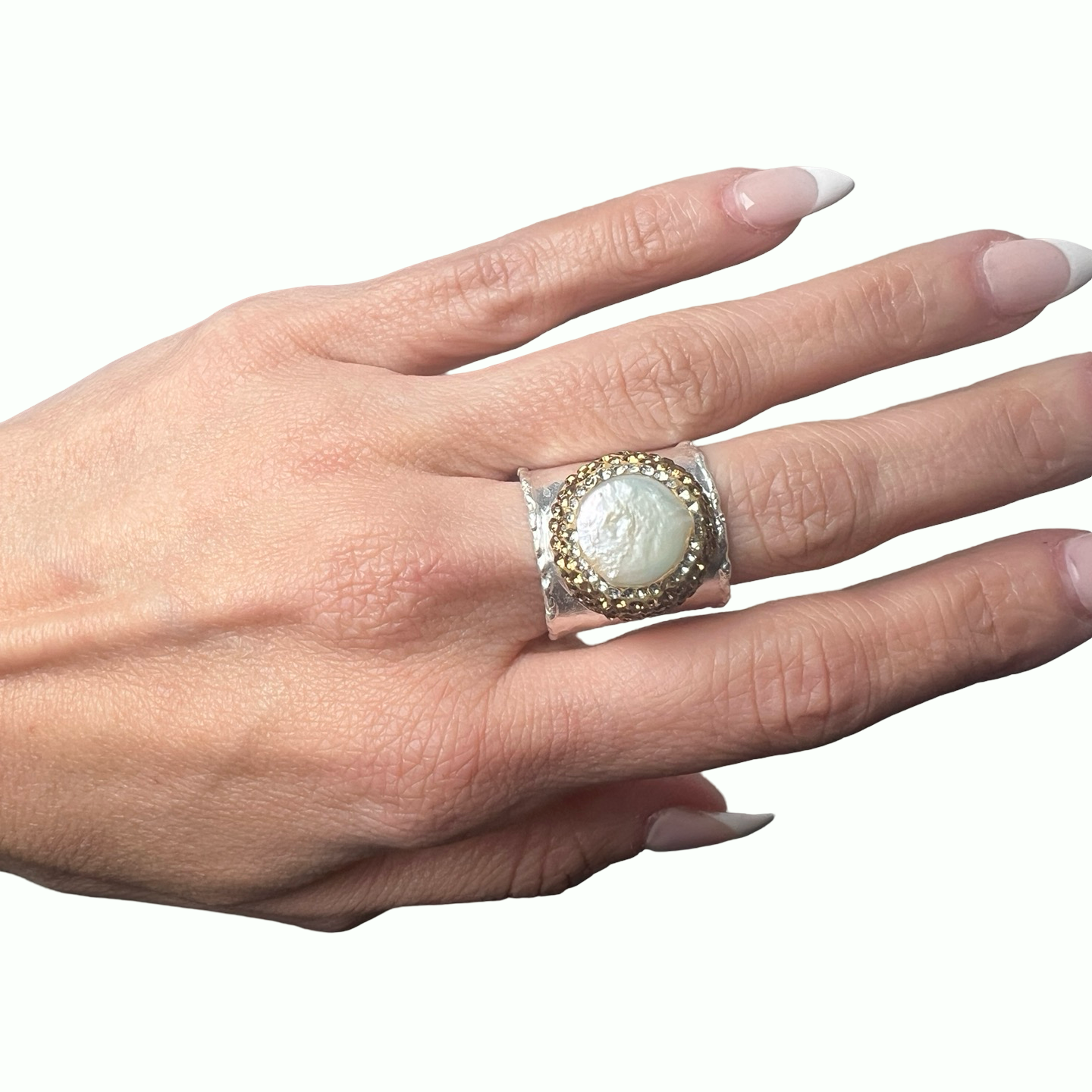 Discover the ultimate blend of elegance and versatility with our exquisite Gemstone & Crystal Adjustable Cuff Rings collection. The captivating gemstones, such as lustrous cultured pearls, dyed ruby, emerald, and turquoise, are beautifully complemented by sparkling gold and silver crystals and high-quality materials like premium silver & gold plated brass in a cuff design. The adjustable feature ensures a perfect fit, allowing you to wear these stunning pieces with ease and confidence.