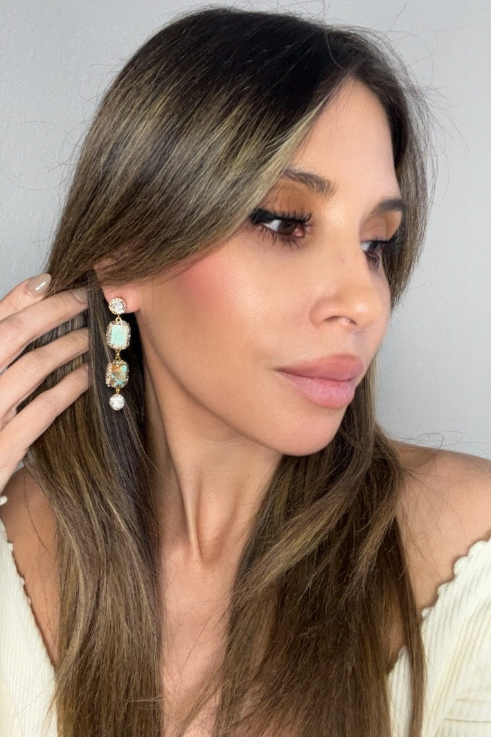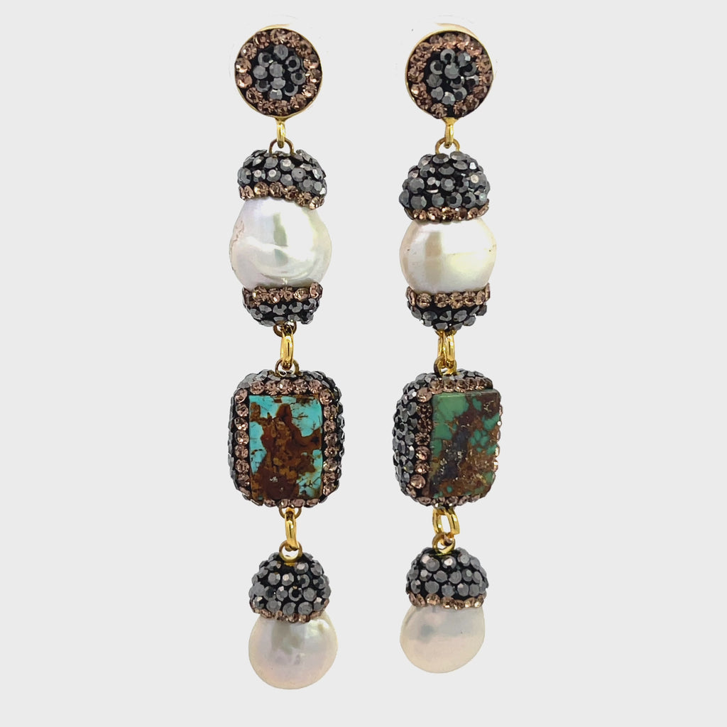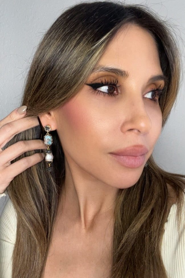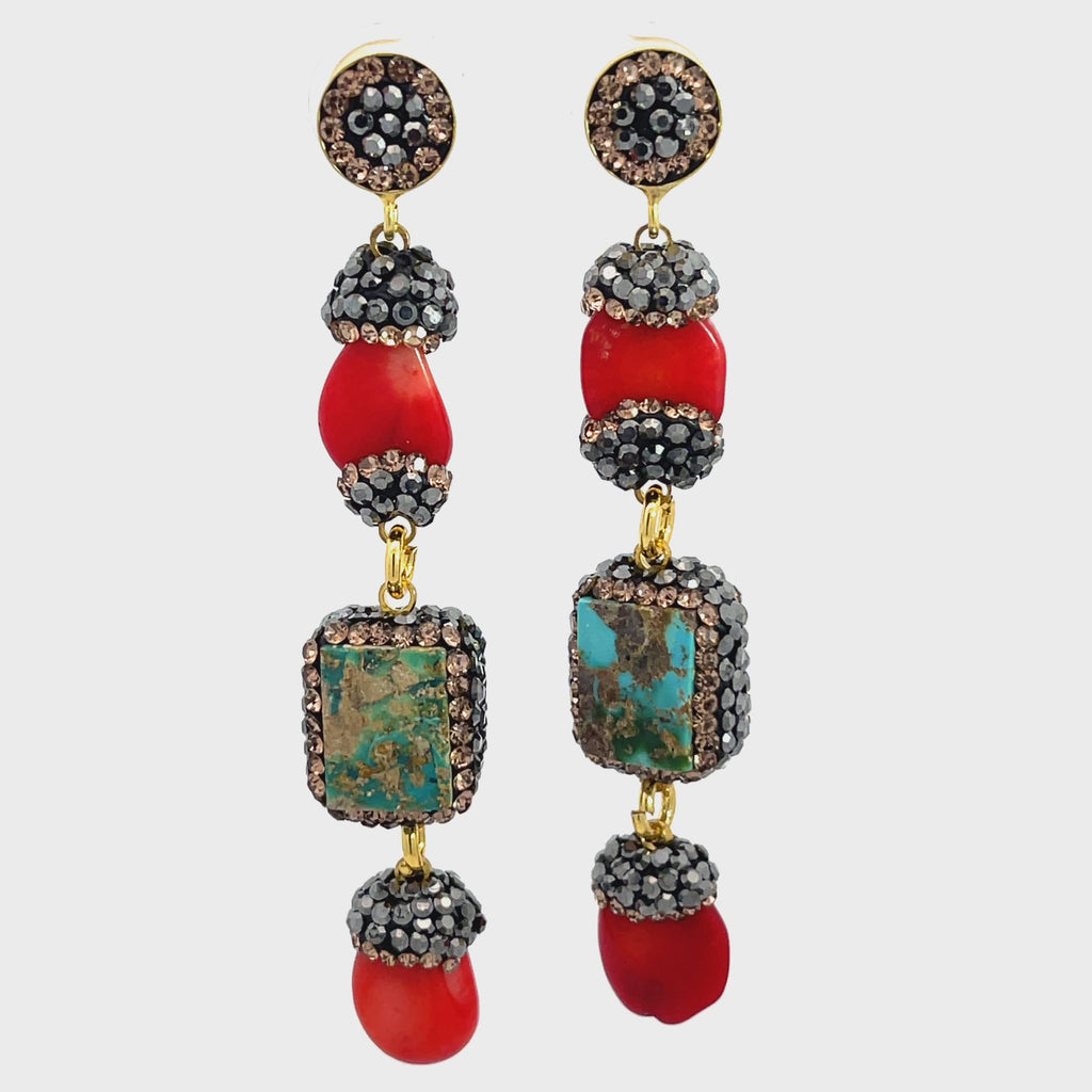 Indulge in the perfect blend of modern glamour and timeless sophistication with our Gemstone Multi Tier Crystal 925 Sterling Silver Dangle Earrings. These exquisite earrings are a showcase of craftsmanship, featuring a captivating multi-tier design with beautiful gemstones like cultured pearls & coral, paired with turquoise that add an air of refined luxury to any ensemble.