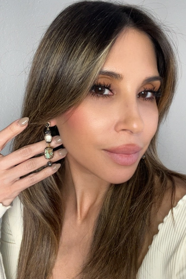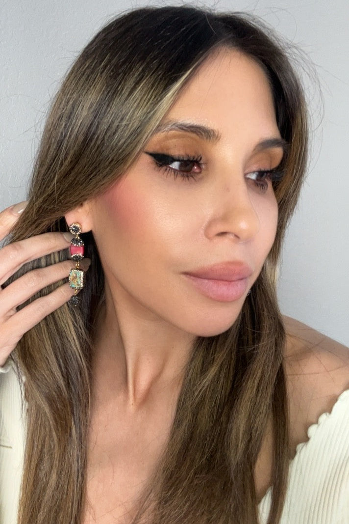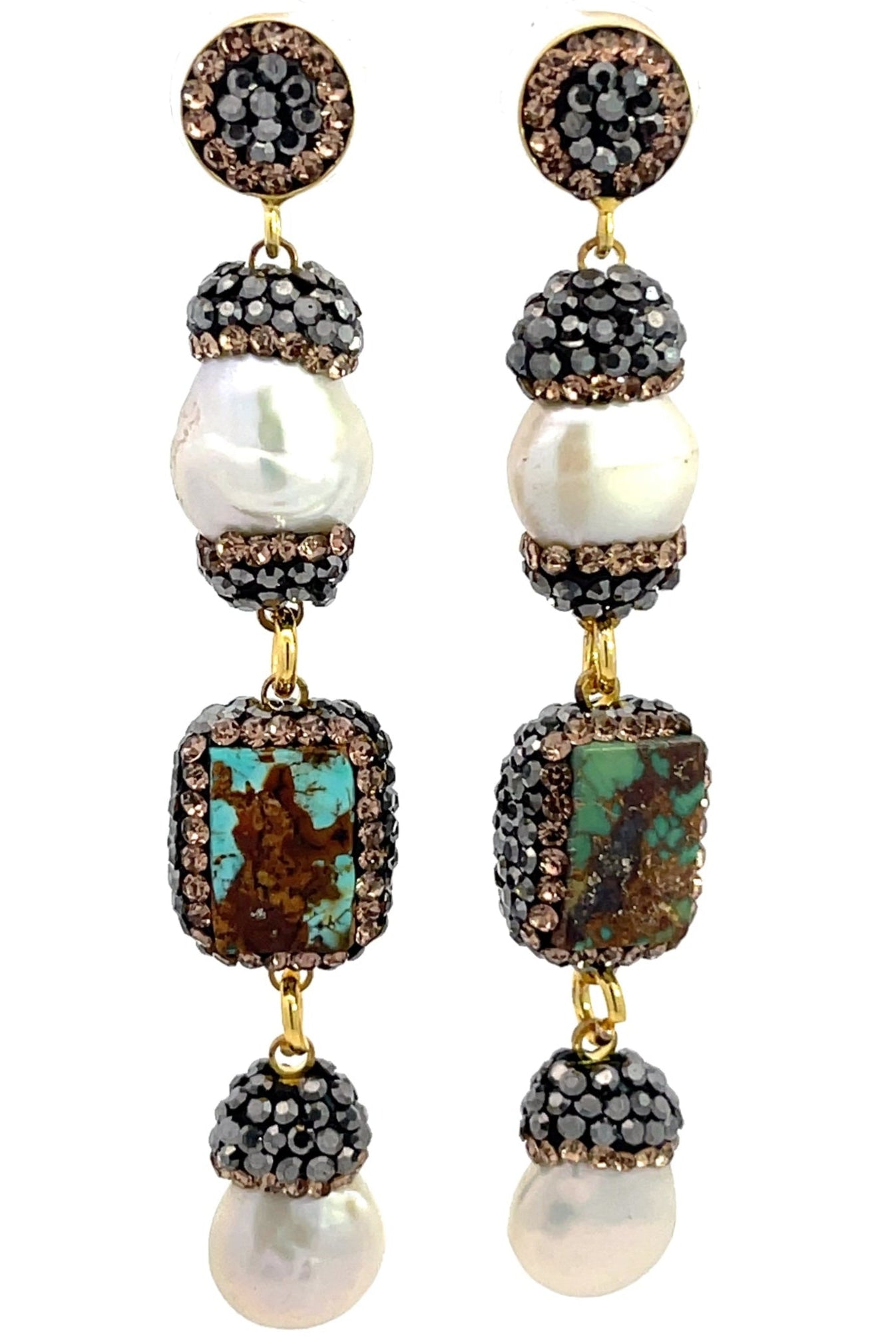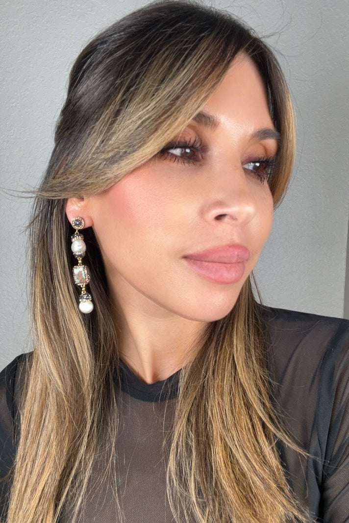 Indulge in the perfect blend of modern glamour and timeless sophistication with our Gemstone Multi Tier Crystal 925 Sterling Silver Dangle Earrings. These exquisite earrings are a showcase of craftsmanship, featuring a captivating multi-tier design with beautiful gemstones like cultured pearls & coral, paired with turquoise that add an air of refined luxury to any ensemble.