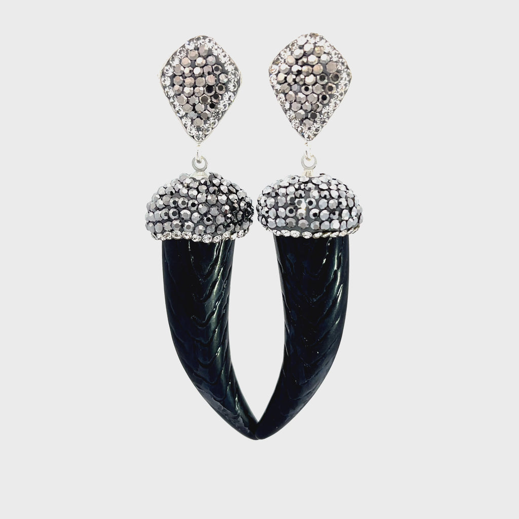 Indulge in the opulence of our Horn Crystal Dangle Earrings. Featuring exquisite horn shaped dangles crowned with shimmering crystal embellishments, these earrings elevate any outfit with a touch of elegance. Add a touch of sophistication to your ensemble with this luxurious accessory.