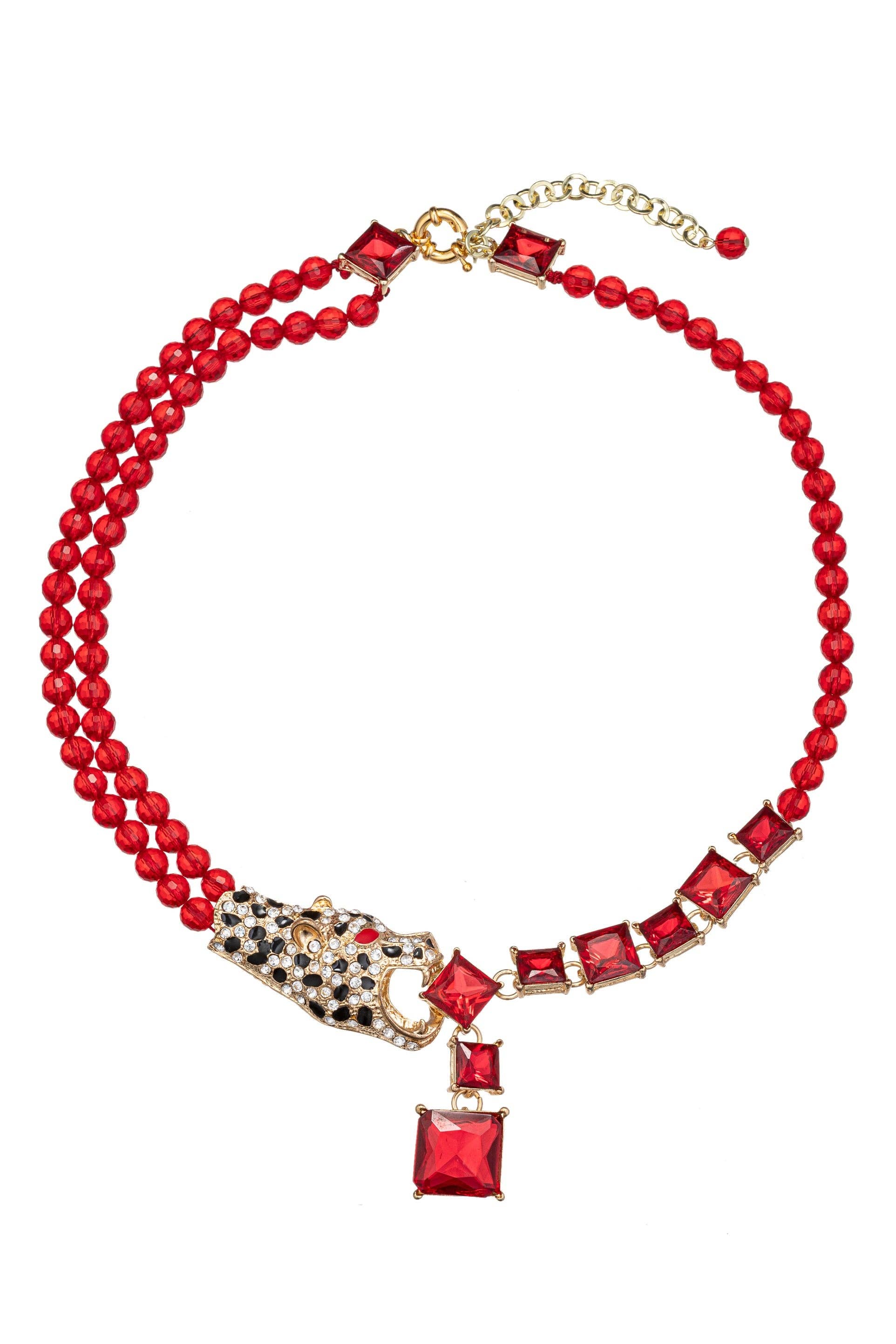 This Larissa Red Leopard Beaded Necklace is the perfect statement piece. Classy yet stylish, the jaguar-like beading is sure to turn heads. The bold red color adds a pop of vibrancy for everyday formal or casual wear.