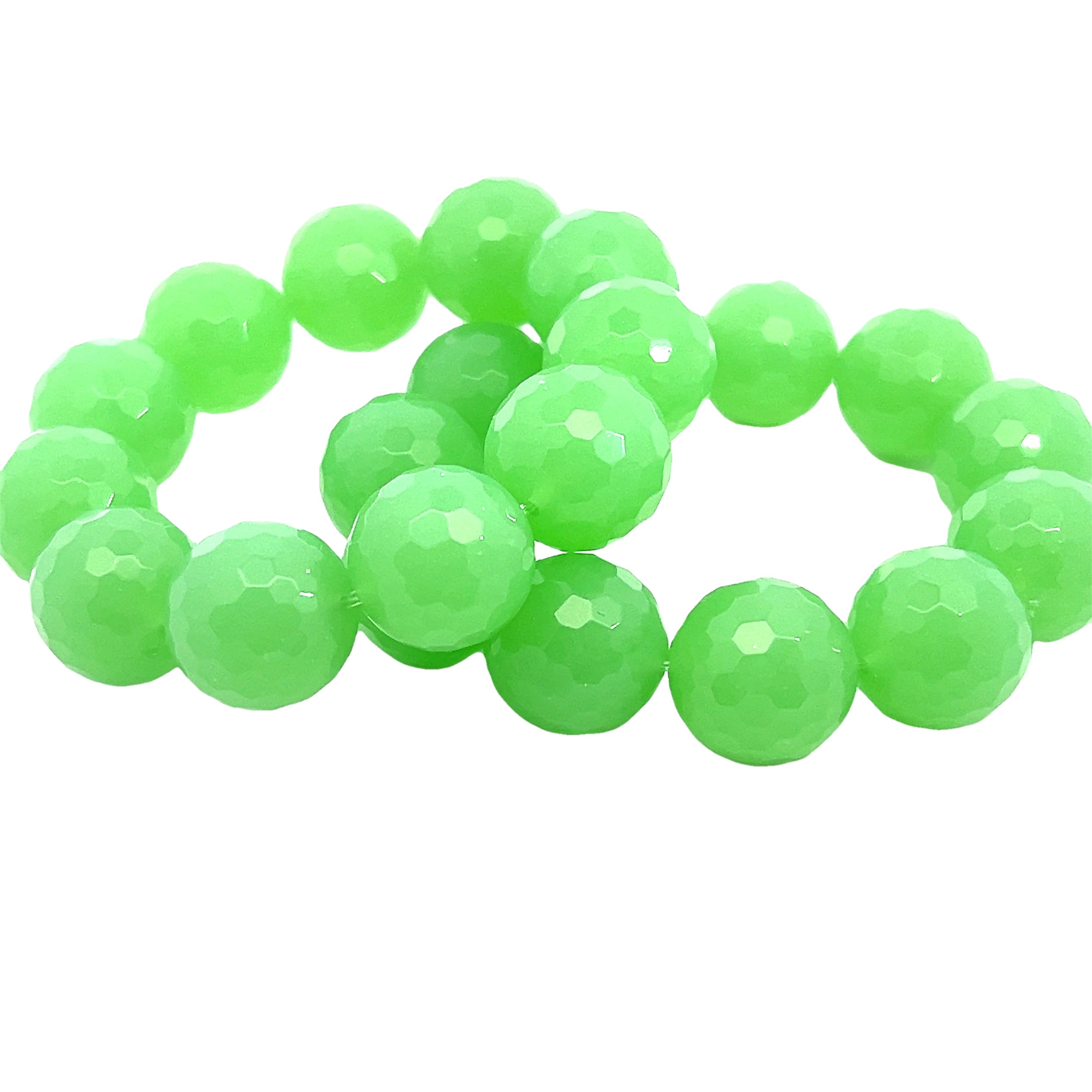 Elevate your look with these 20mm lime green gemstone beads threaded on a stretch cord. Pair them with the matching necklace and earrings to complete the look!