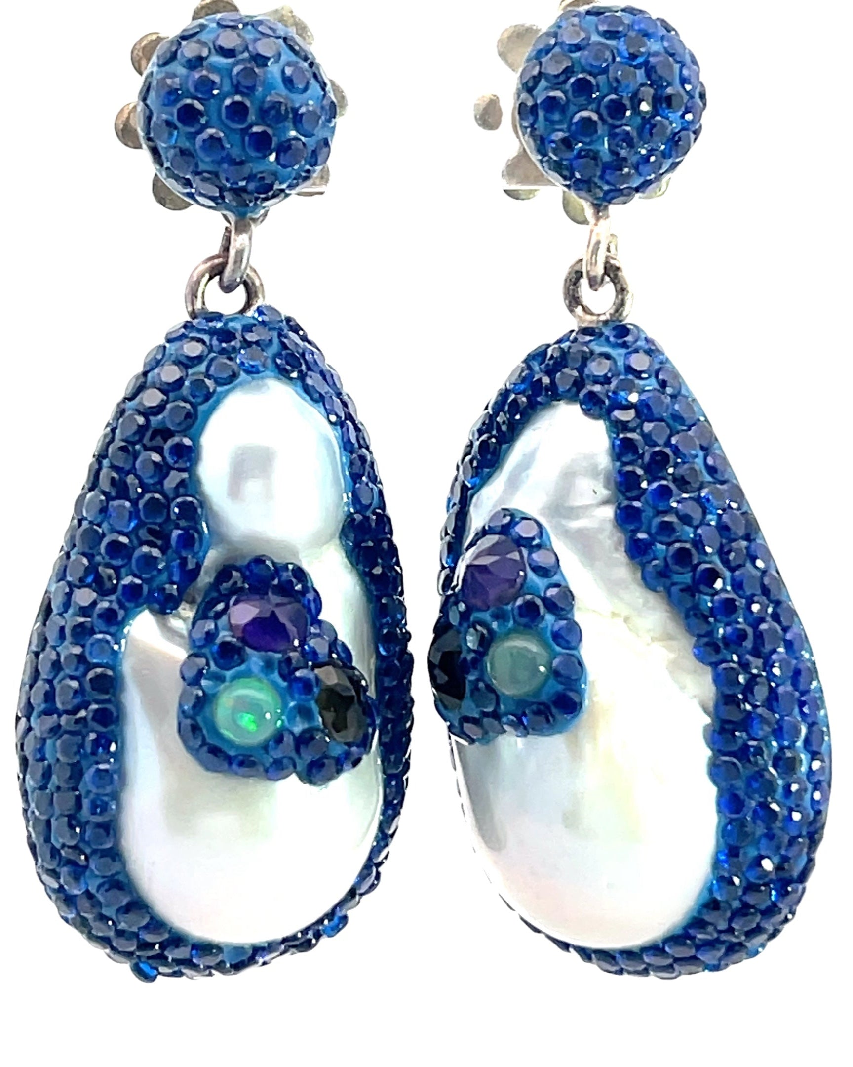 Showcase your style with the Navy Blue Crystal Pearl Drop Sterling Silver Earrings, a perfect blend of elegance and color. Featuring radiant & colorful crystals over a lustrous pearl, these earrings bring a pop of vibrant color to any outfit. The delicate drop design adds a graceful movement, making them ideal for both special occasions and everyday wear. These earrings are a chic and versatile addition to your jewelry collection, effortlessly enhancing your look.