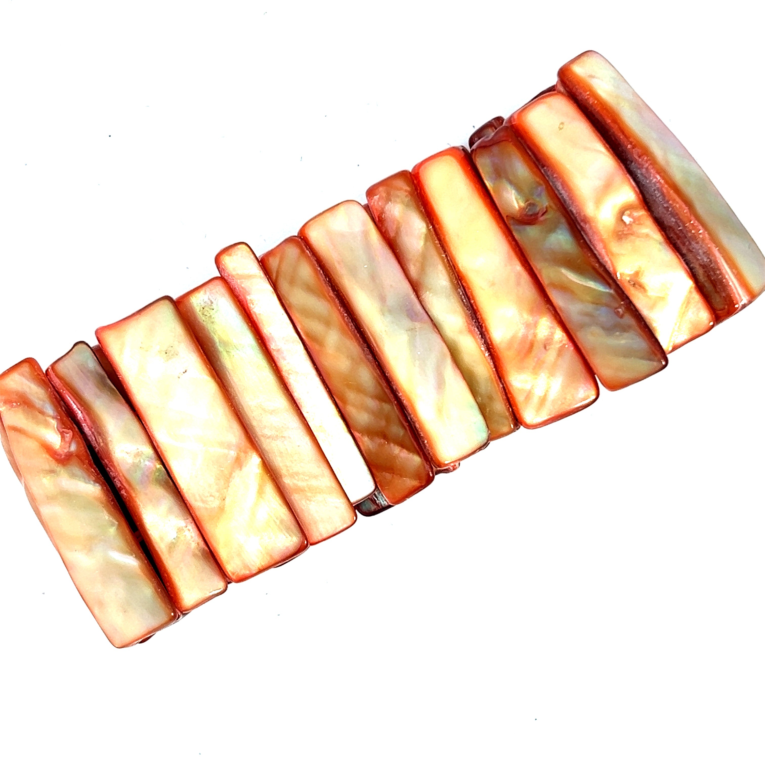 Introducing our Peach Mother of Pearl Shell Stretch Bracelet – a delicate and elegant accessory that captures the beauty of the ocean with its peach-colored mother of pearl shells. This bracelet features smooth and polished peach-colored mother of pearl shells, exuding a soft and iridescent glow reminiscent of sunset hues over the sea.