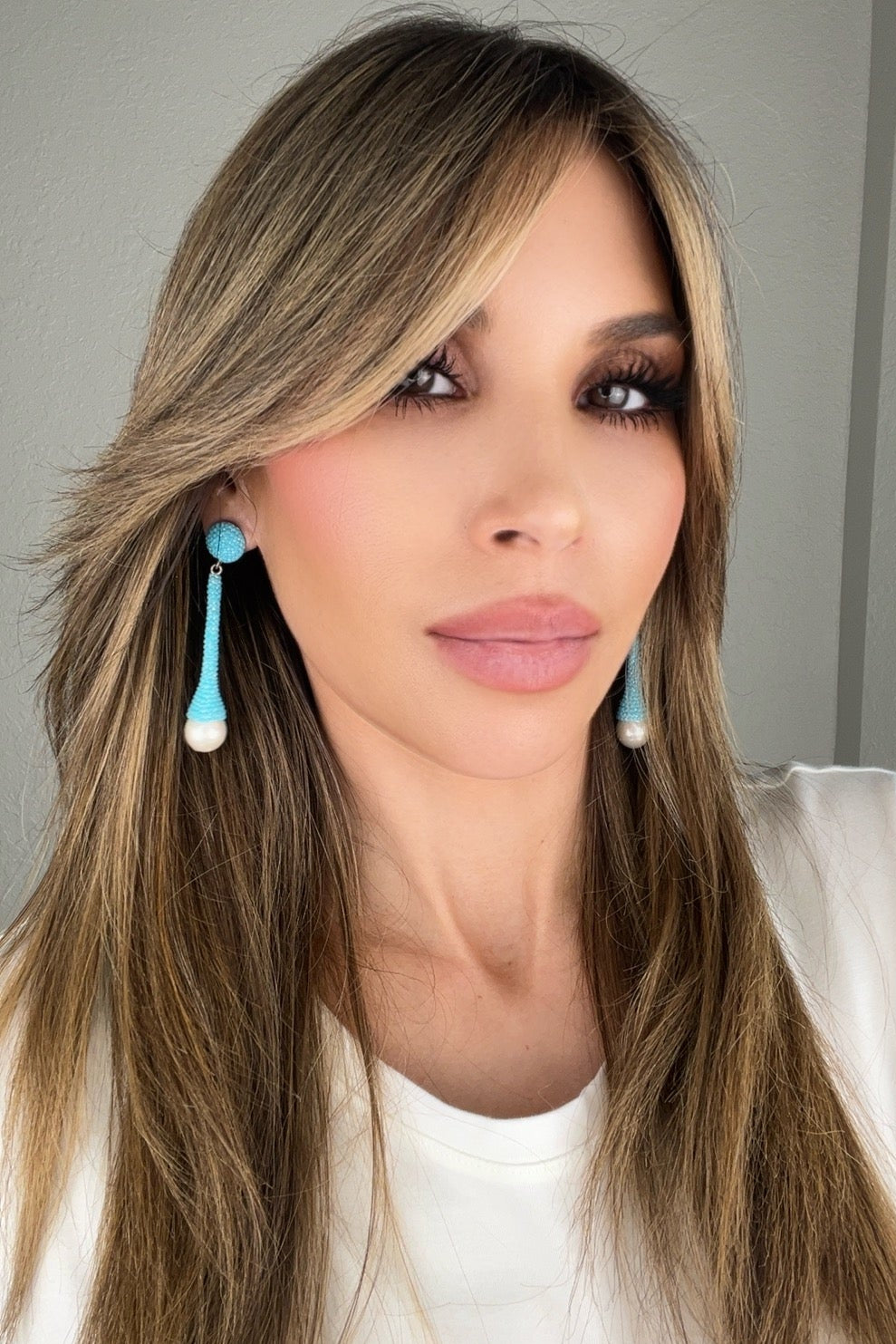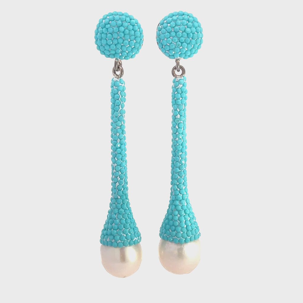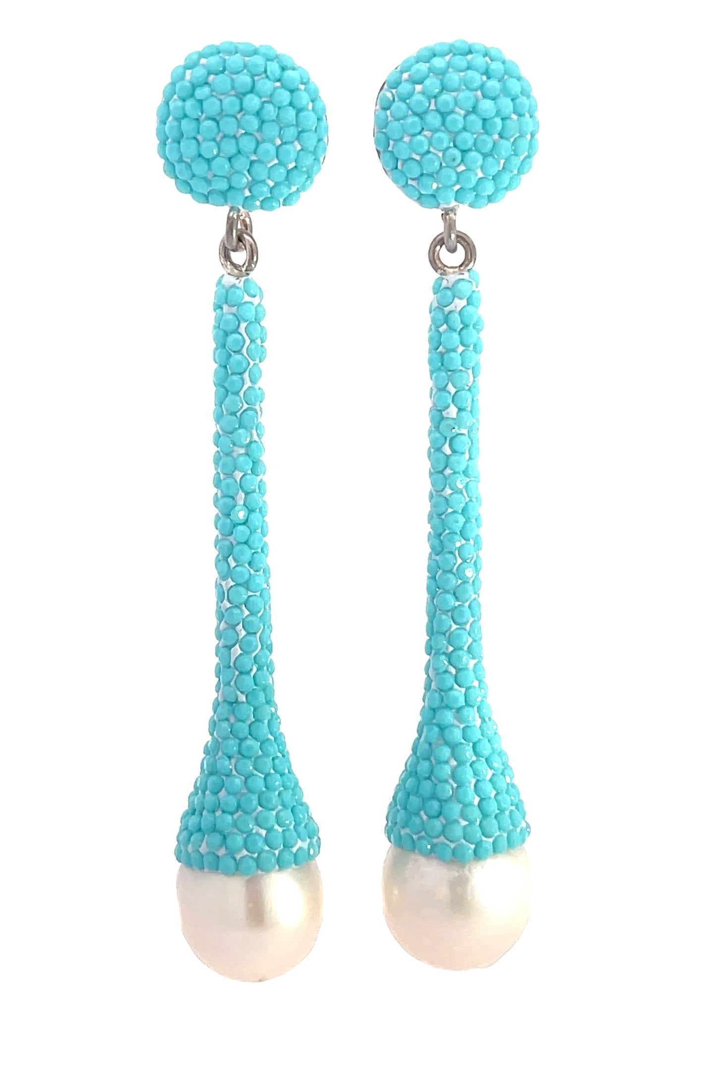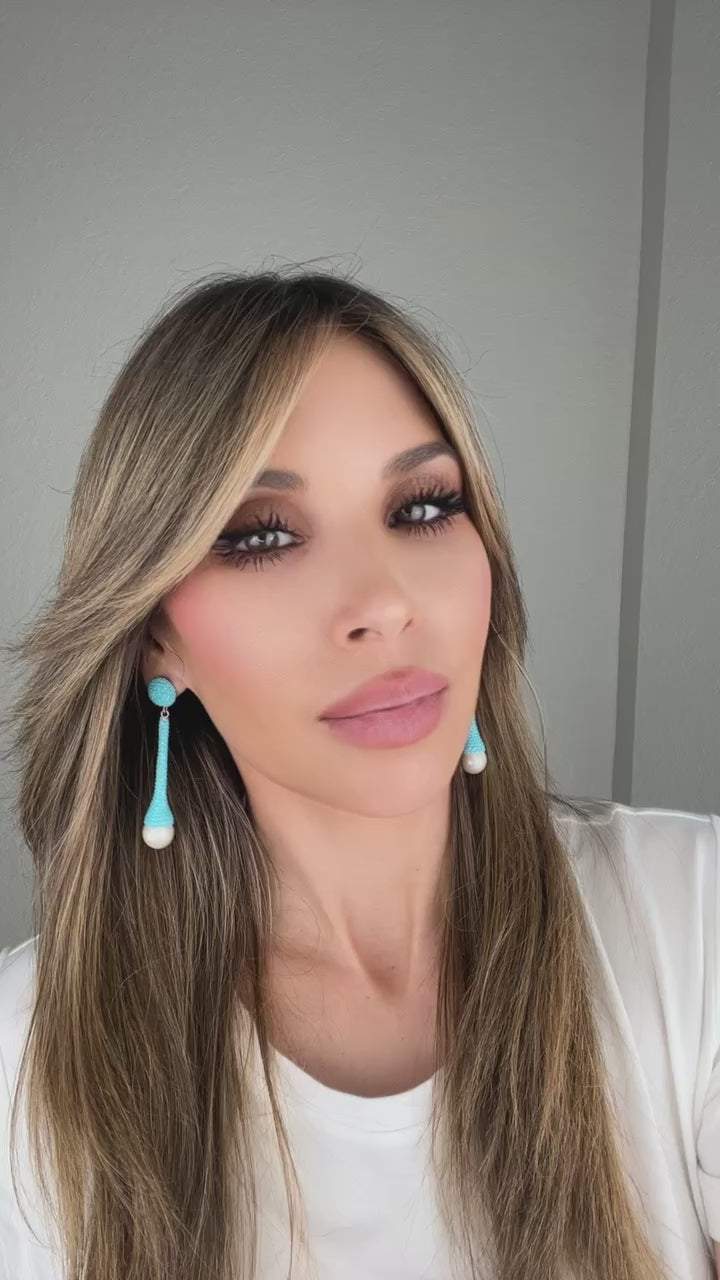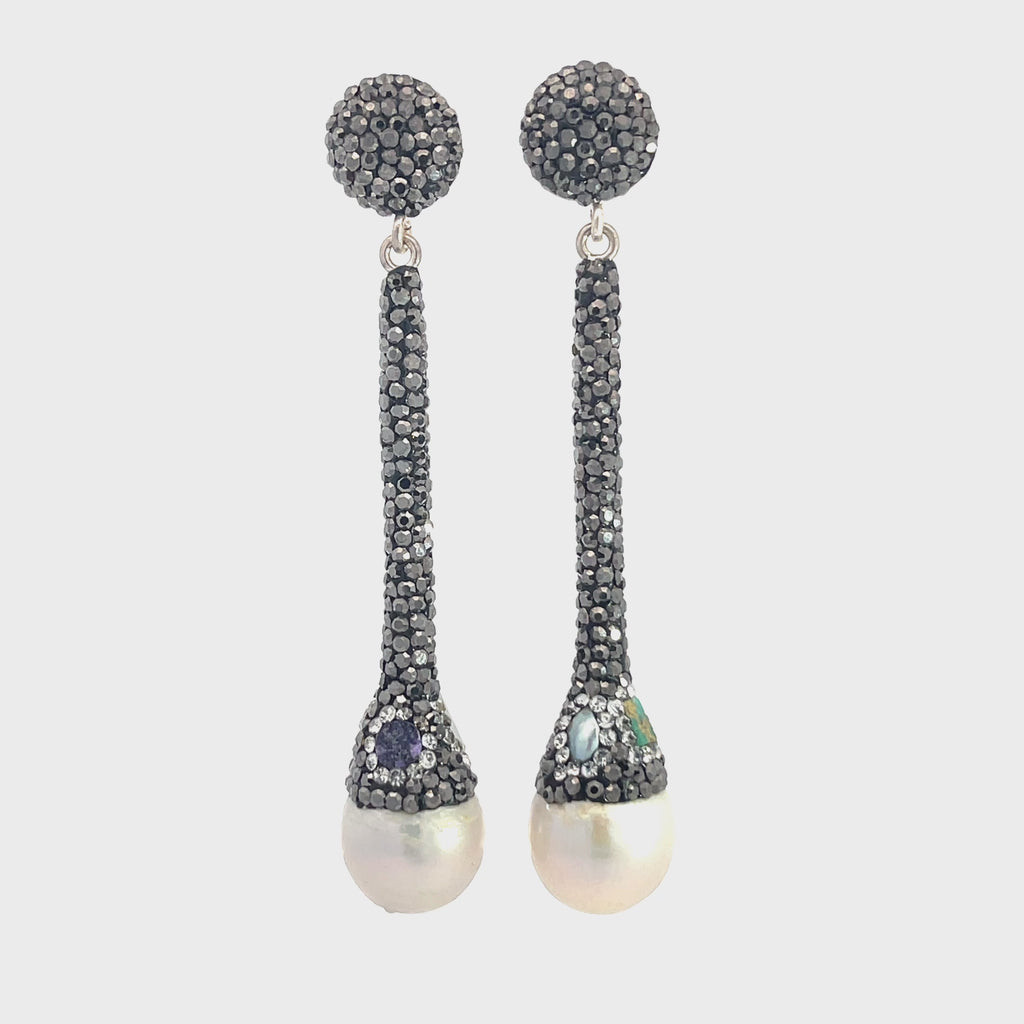 Our Pearl Crystal Drop Earrings are a striking blend of opulent beauty. Featuring rich colorful crystals falling onto a lustrous pearl, these earrings offer a bold yet sophisticated look. The combination creates a dynamic contrast, making these earrings an eye-catching accessory for any occasion, whether you're dressing up for a night out or adding a statement to your everyday style. are a striking blend of opulent beauty.