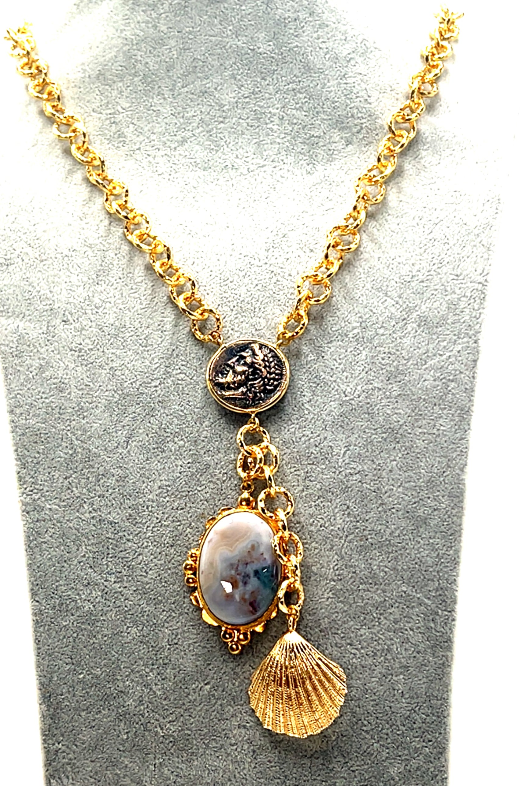 Elevate your jewelry game with this Pearl Gemstone Gold Plated Pendant Necklace. The exquisite pearl center stone adds a touch of sophisticated elegance, while the gold plating brings a touch of luxury. Perfect for any occasion, this necklace will surely turn heads and make a statement.