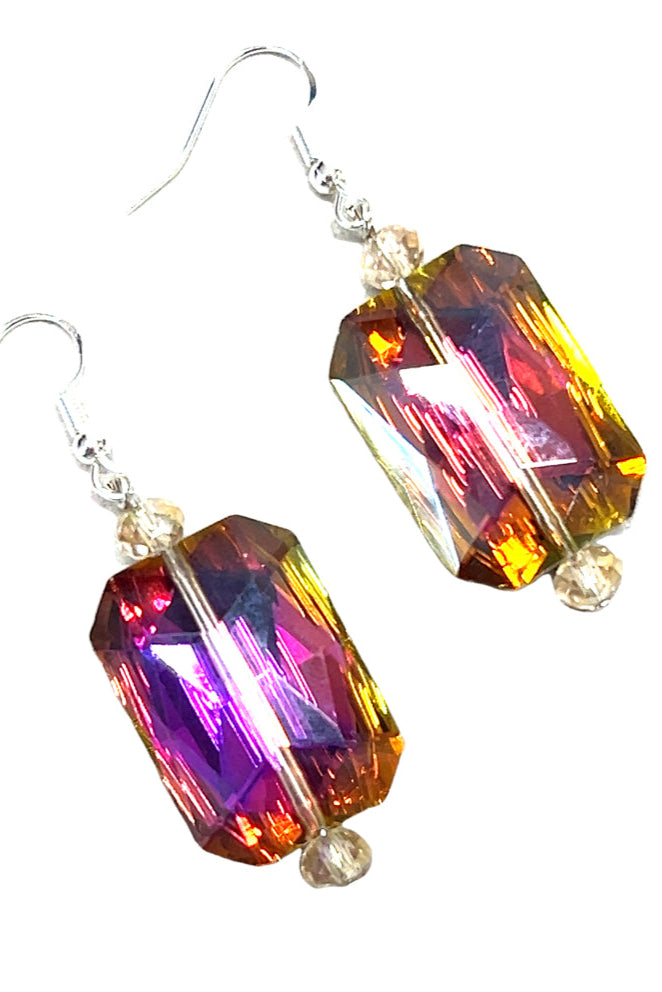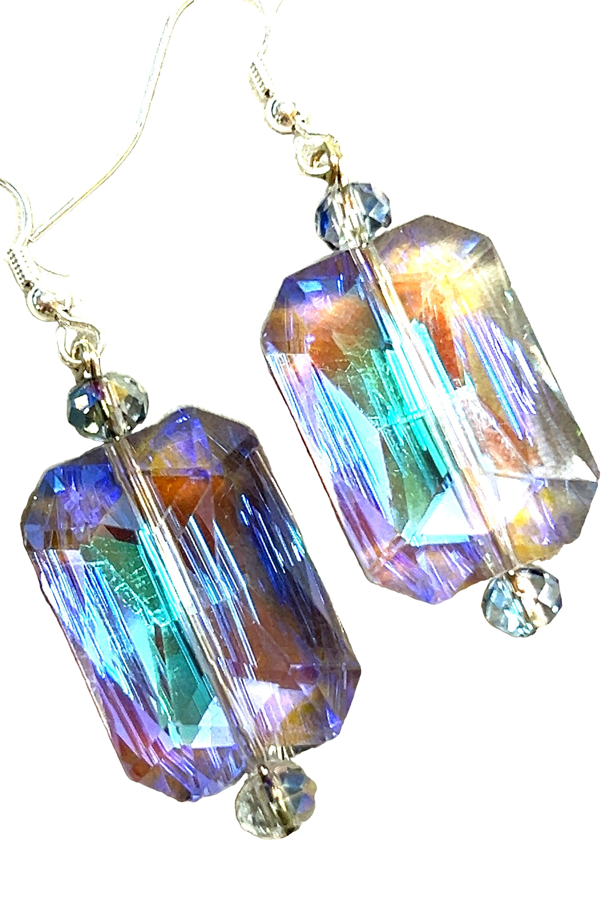 Elevate your accessory game with our exquisite collection of rectangle crystal earrings, featuring stunning rectangular crystals that catch the light beautifully, set on a sterling silver hook post for both style and comfort. The design ensures they are lightweight and comfortable for all-day wear. Pair them with matching necklaces and bracelets to create a cohesive look that exudes sophistication.