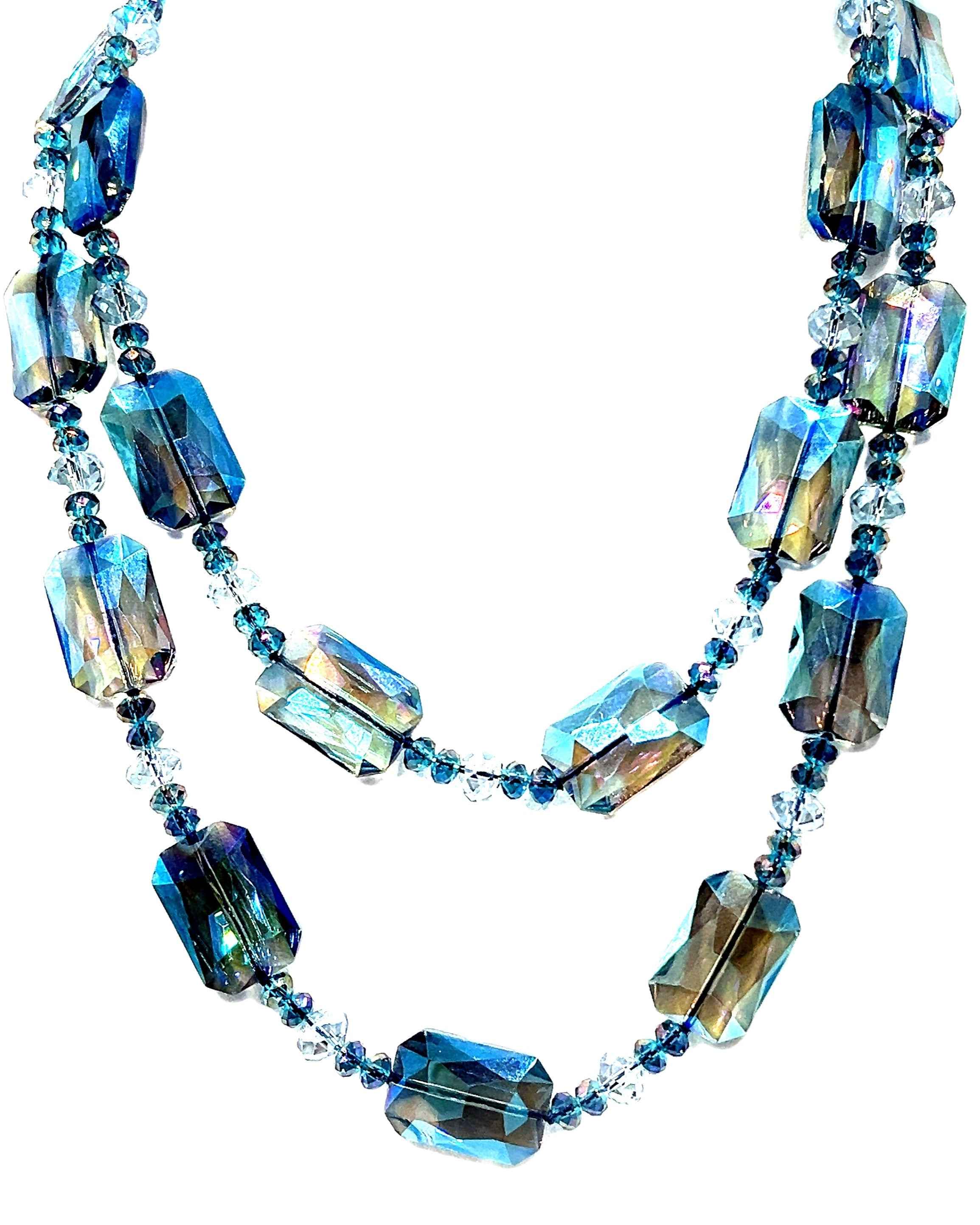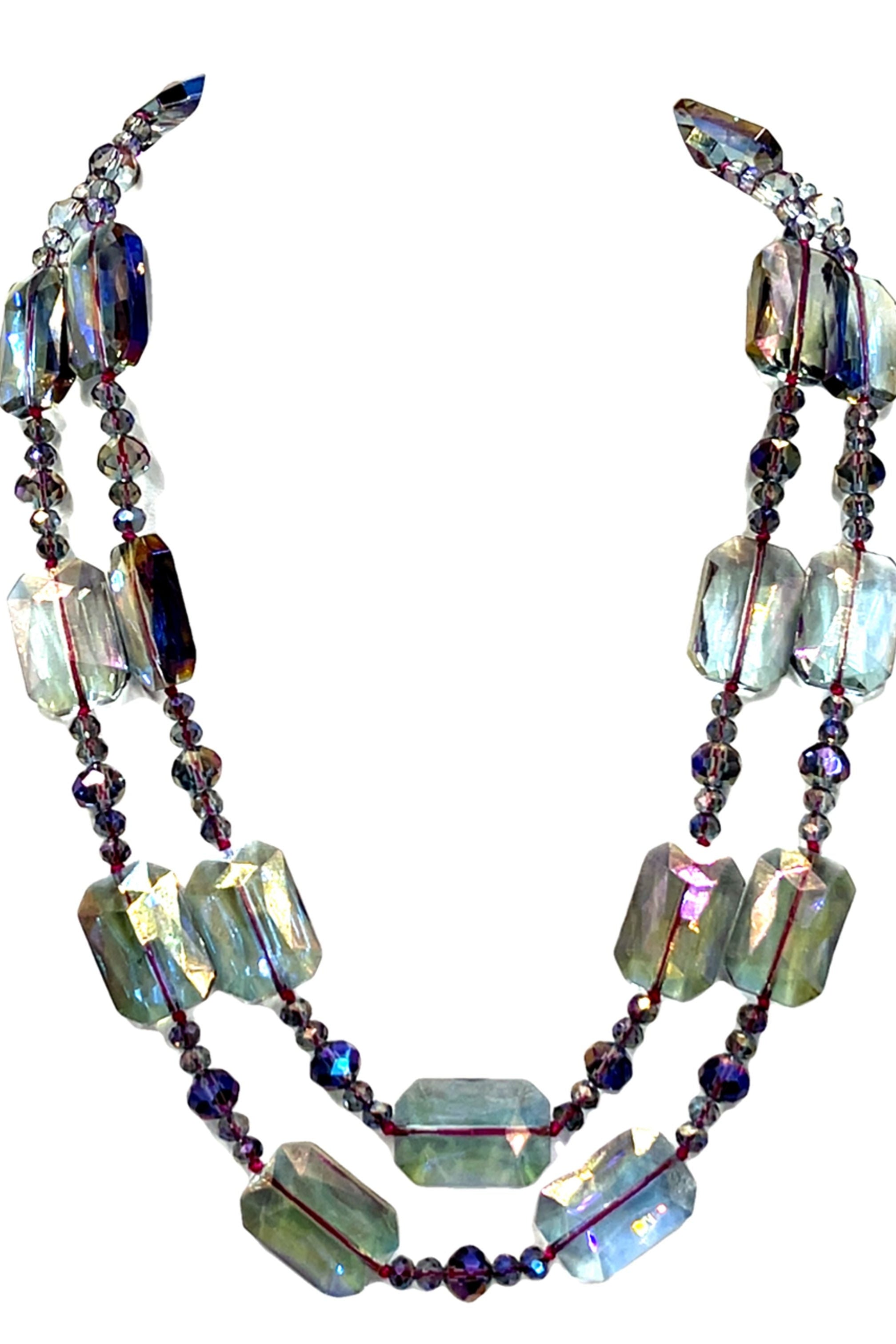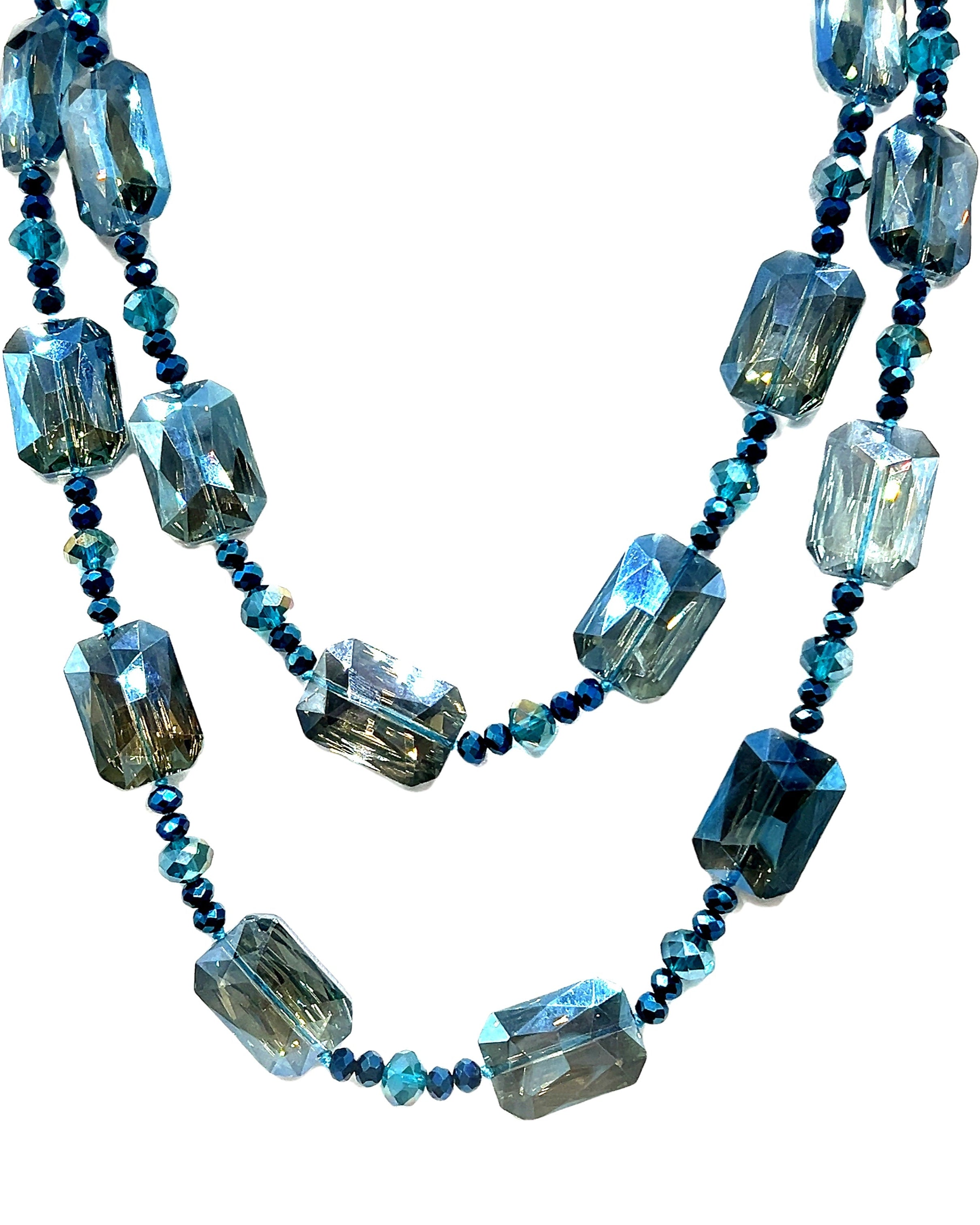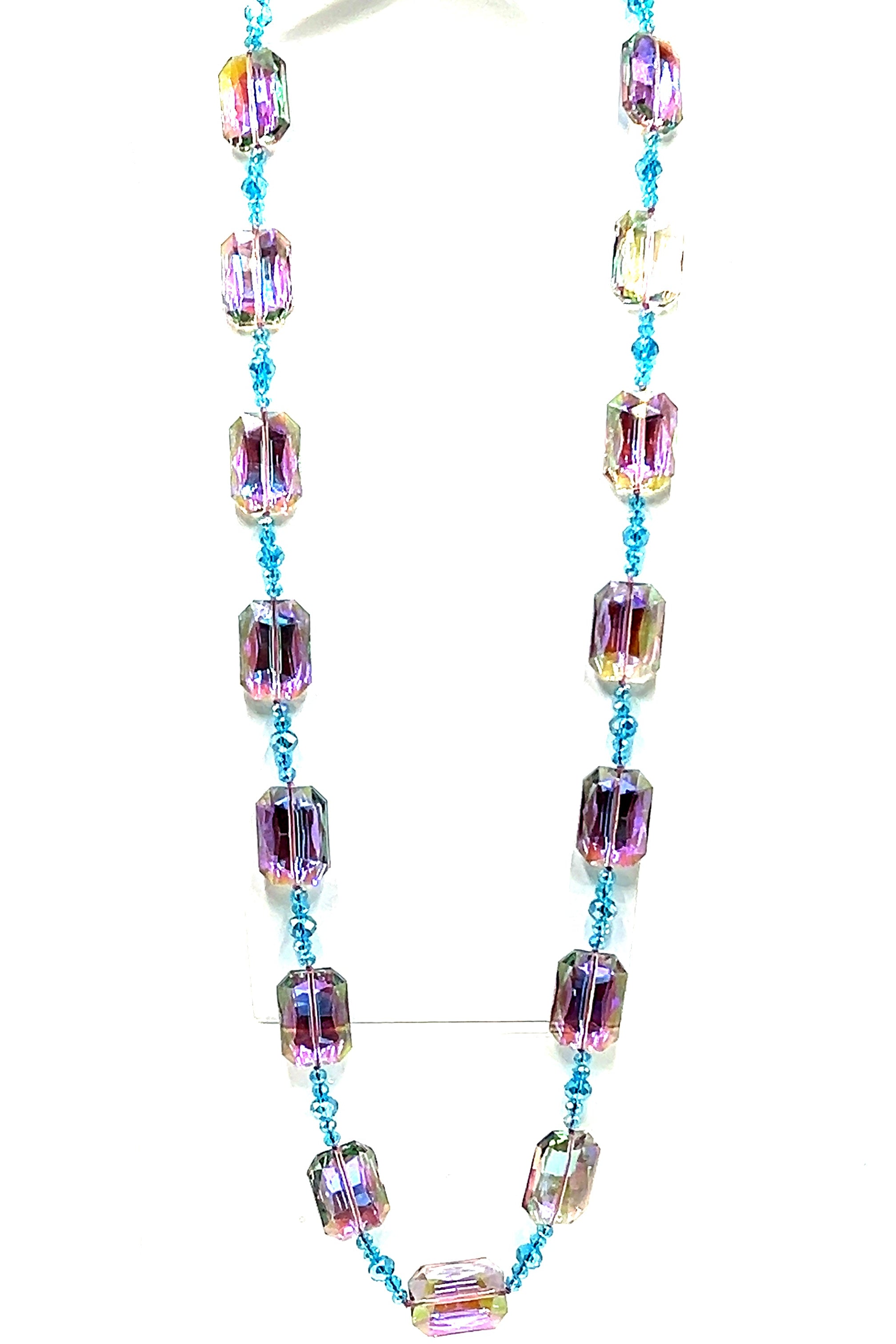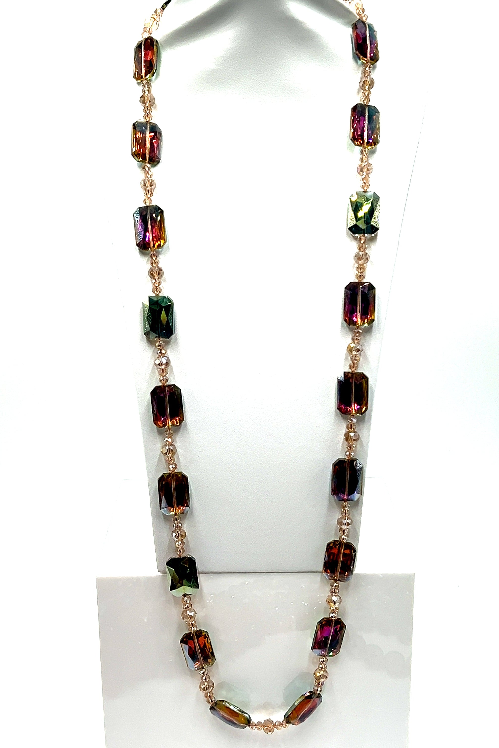 Our best selling Rectangle Crystal Long Necklaces feature exquisite rectangle crystals hand knotted on silk cord. Wear in single strand or double it up for a chunkier look.