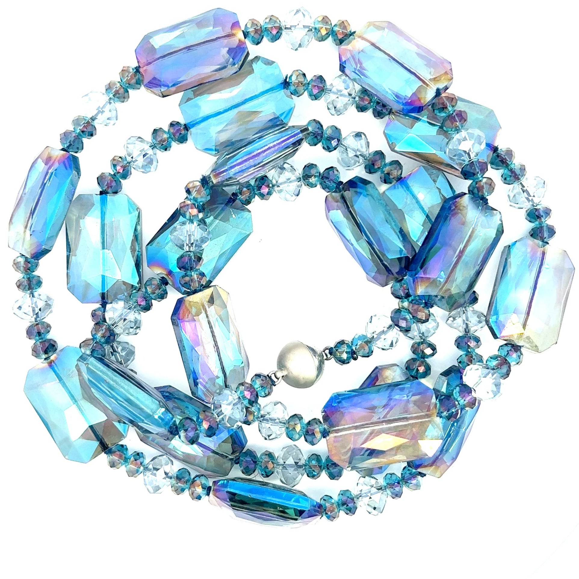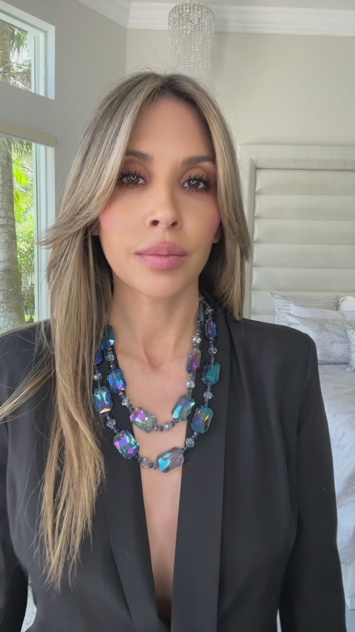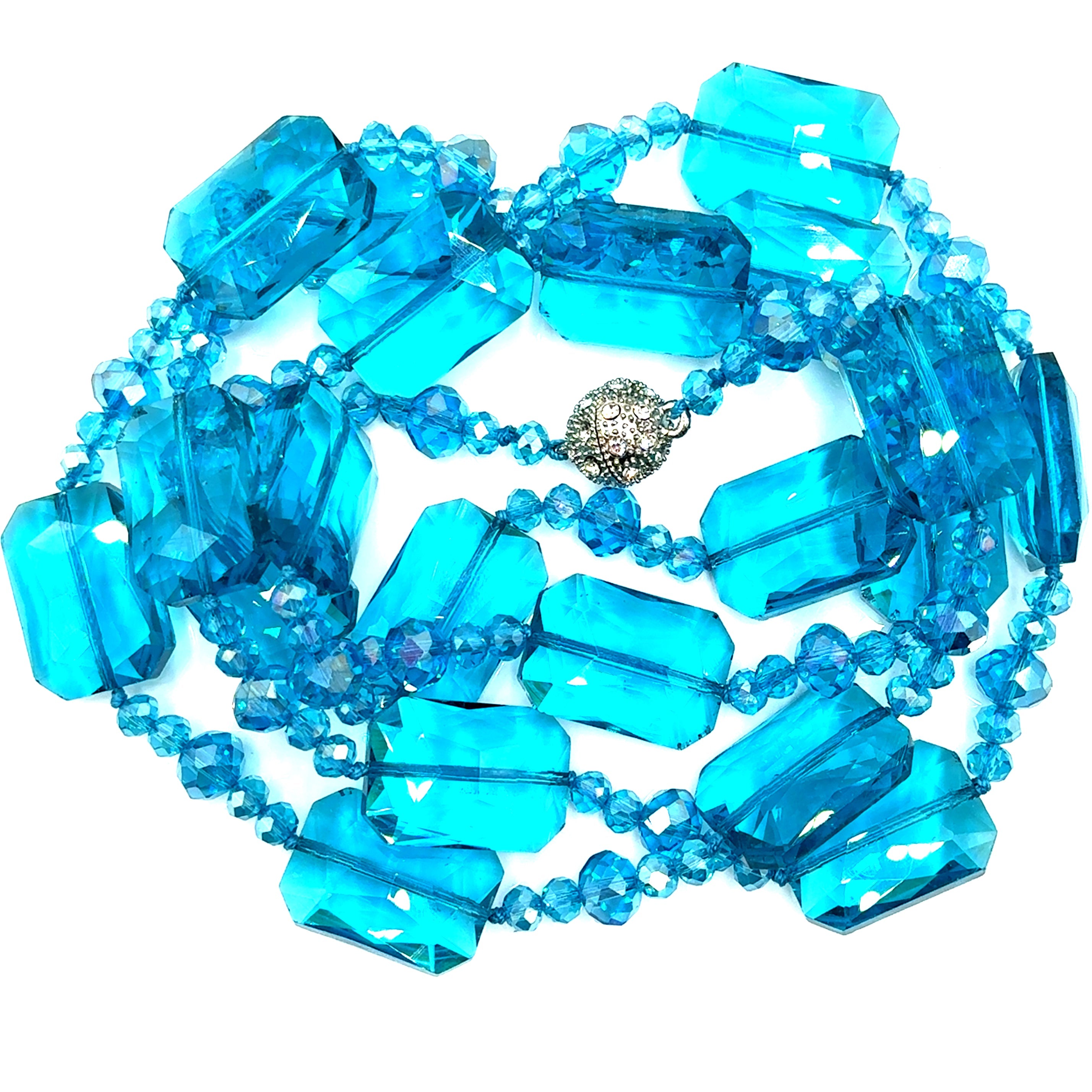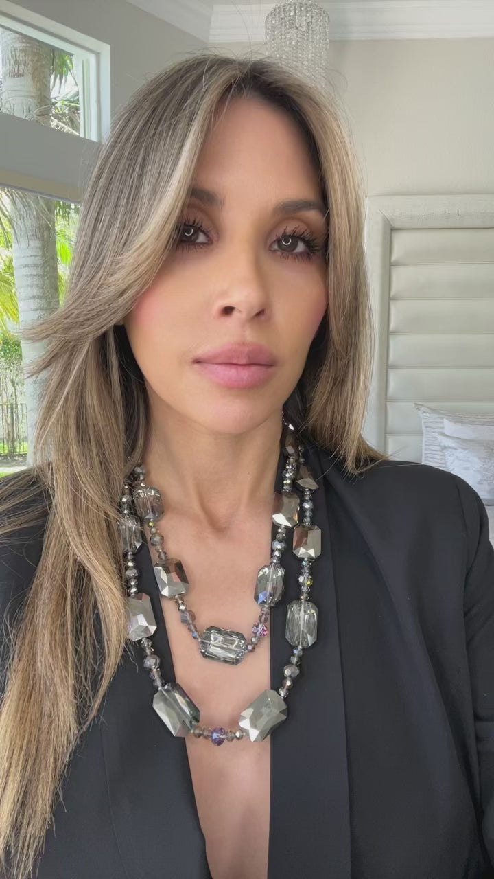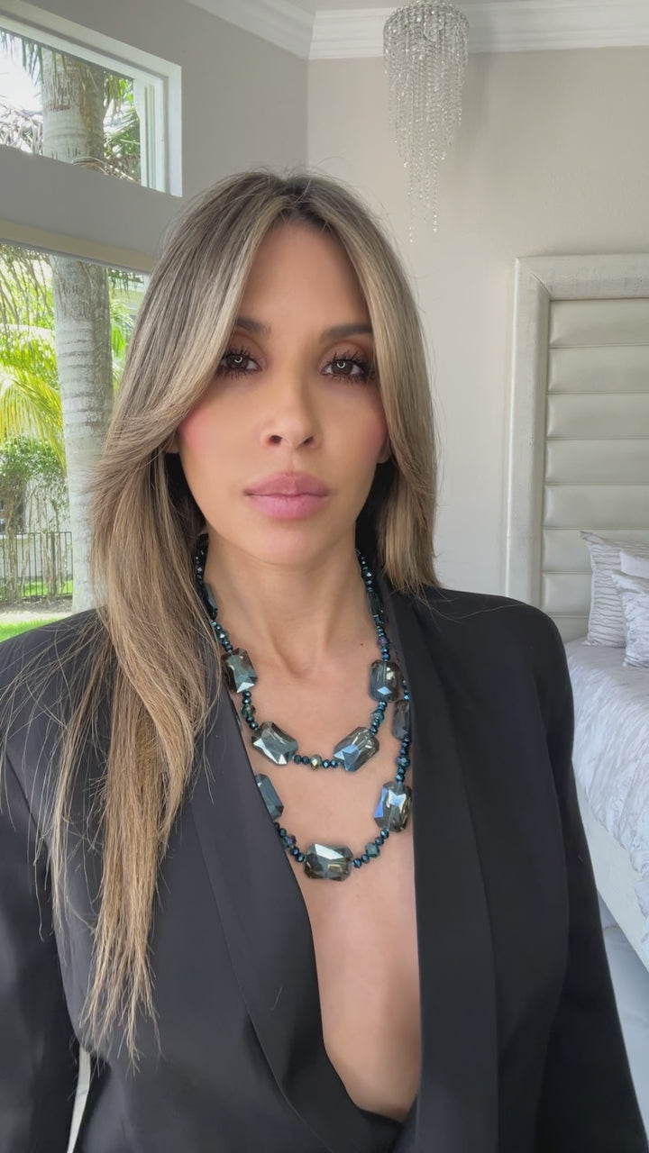 Our best selling Rectangle Crystal Long Necklaces feature exquisite rectangle crystals hand knotted on silk cord. Wear in single strand or double it up for a chunkier look.