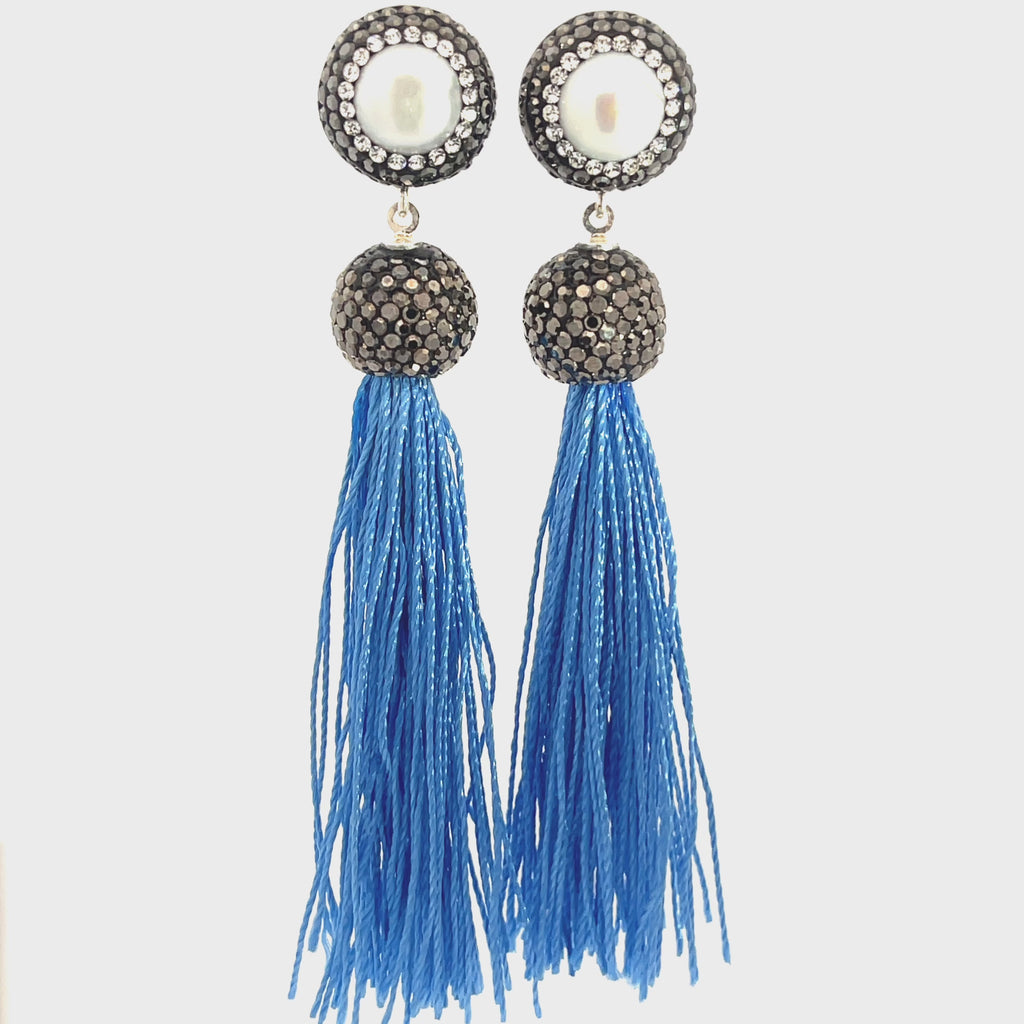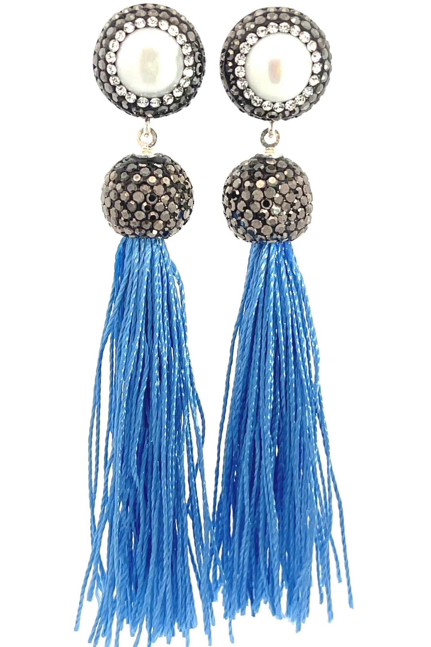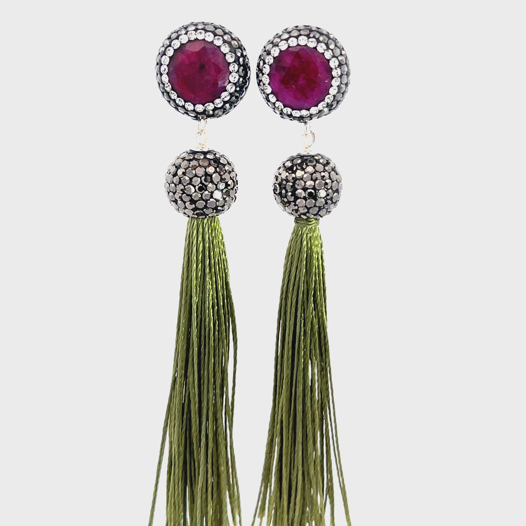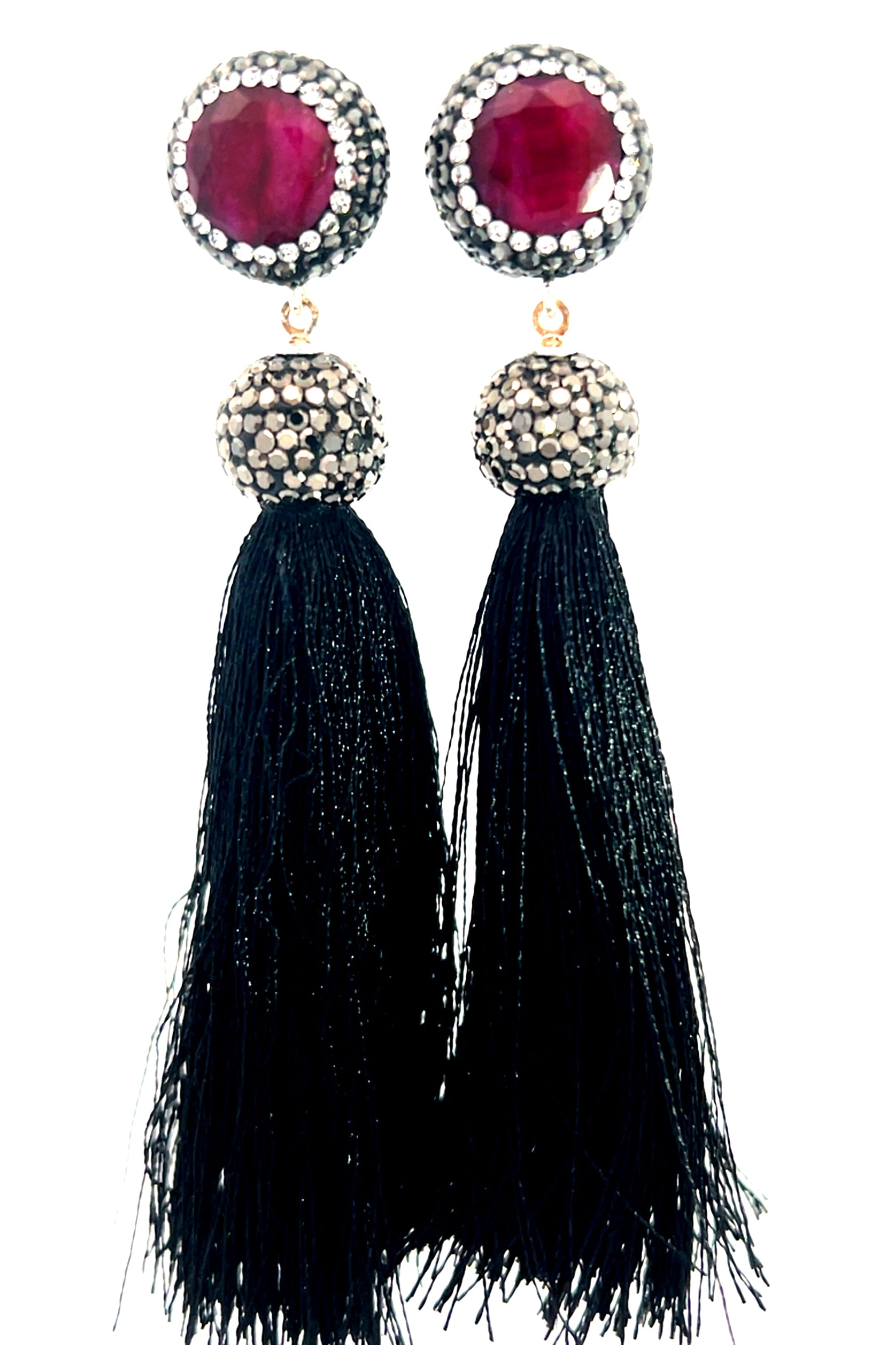 Add some flair to your outfit with these Round Gemstone Long Tassel Earrings. Crafted from 925 Sterling Silver, the long tassel design features a lustrous round gemstone and sparkling crystals, giving you a touch of elegance with a playful twist.