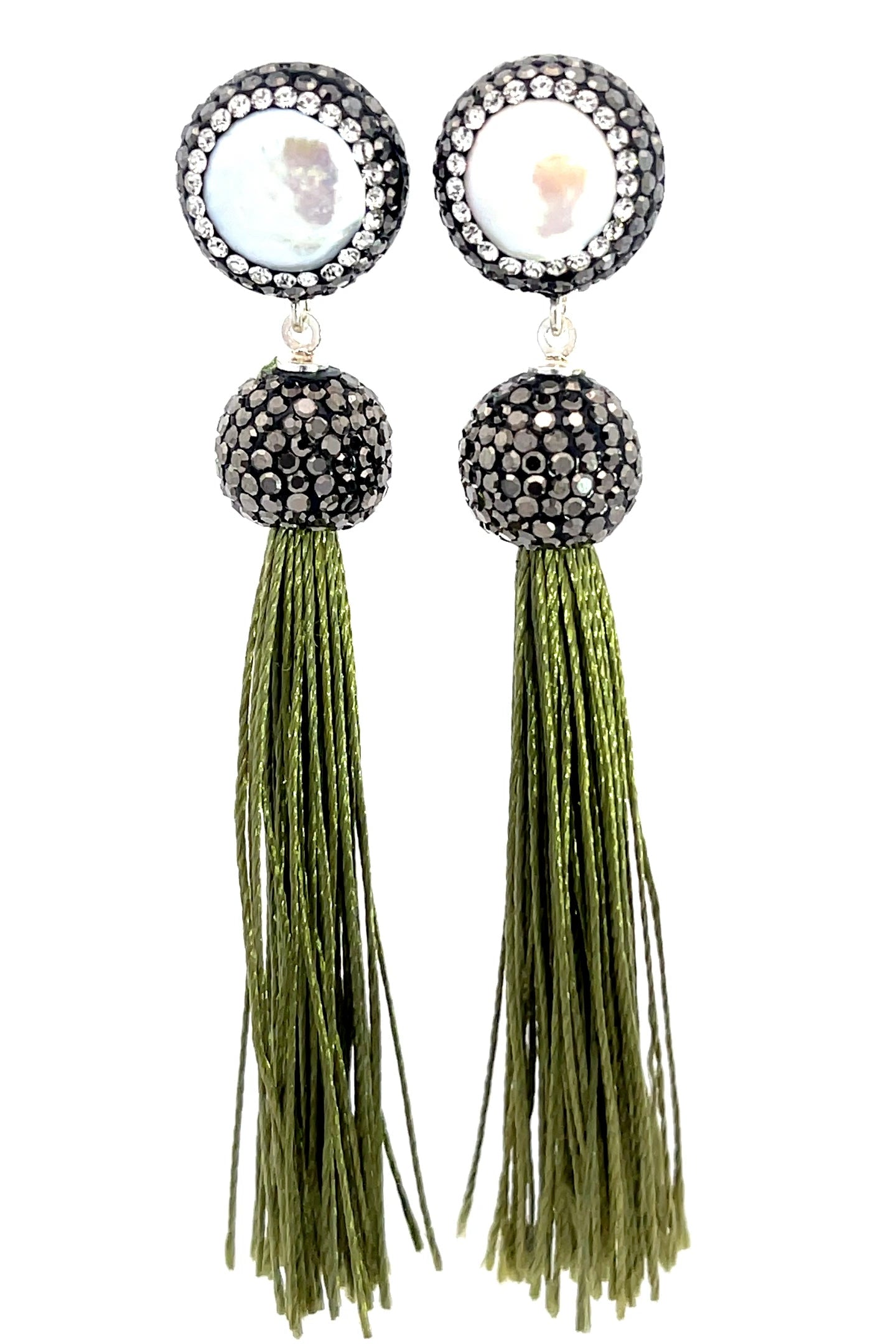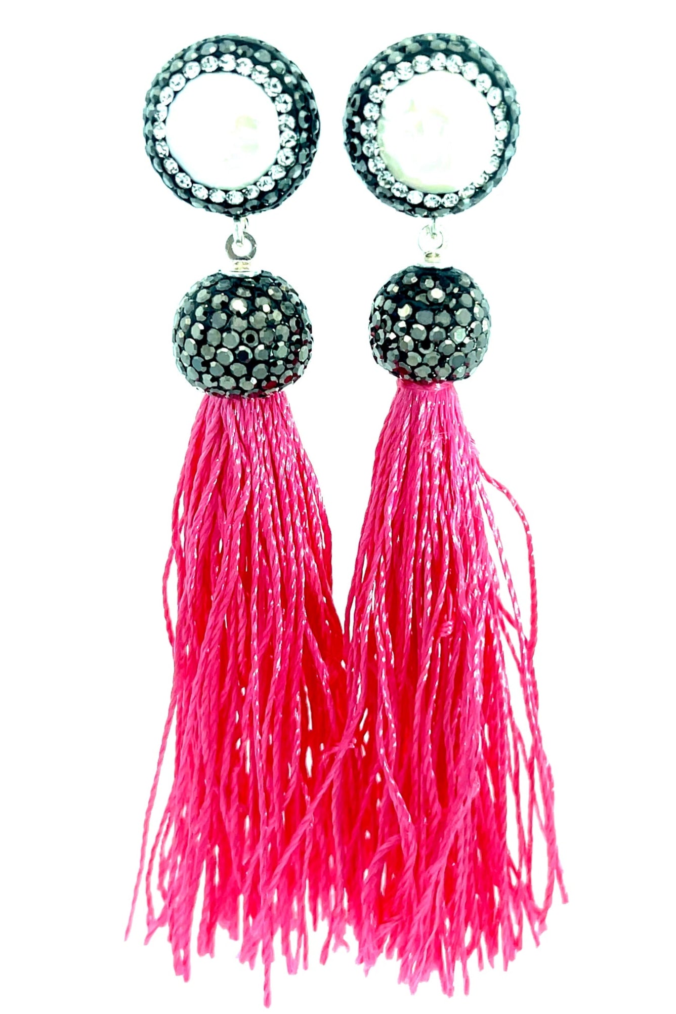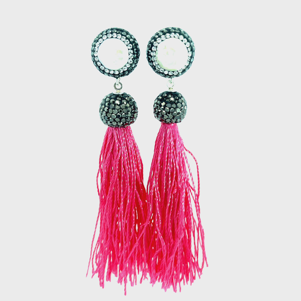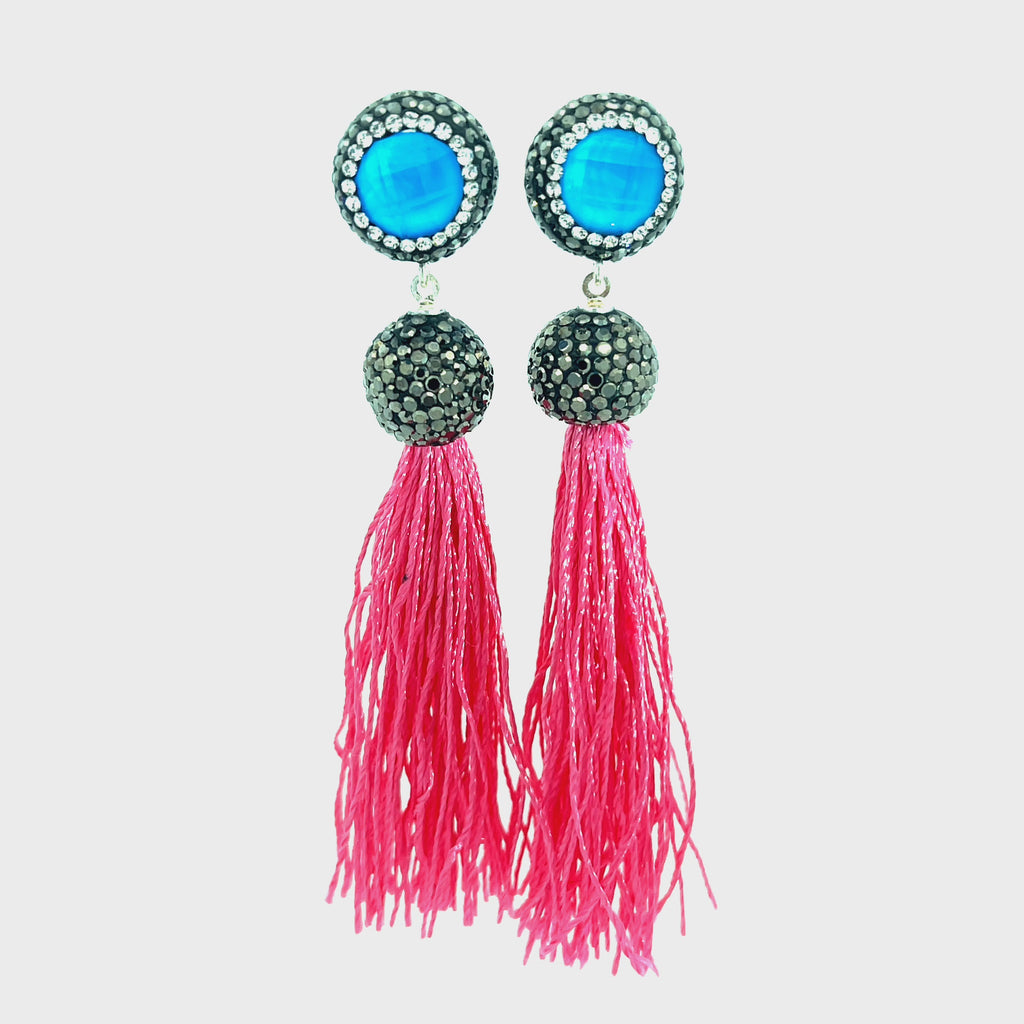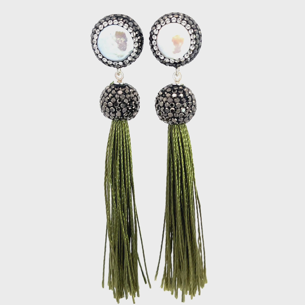Add some flair to your outfit with these Round Gemstone Long Tassel Earrings. Crafted from 925 Sterling Silver, the long tassel design features a lustrous round gemstone and sparkling crystals, giving you a touch of elegance with a playful twist.