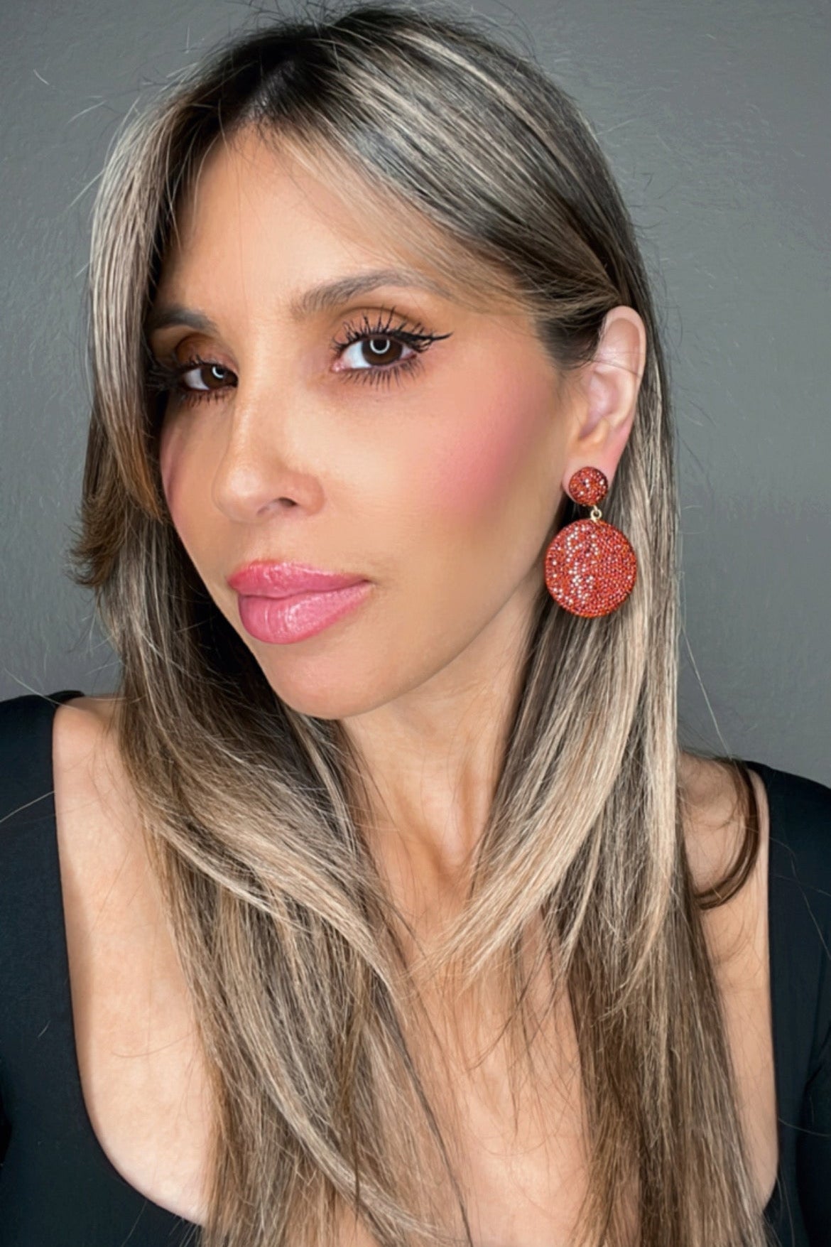 Designed for versatility, these earrings seamlessly transition from casual to more formal occasions. The rich rust hue of the crystals adds warmth and depth, making them the perfect choice to express your unique style with confidence. Elevate your jewelry collection with the understated charm of our Rust Round Crystal Earring, a statement piece that complements your individuality.