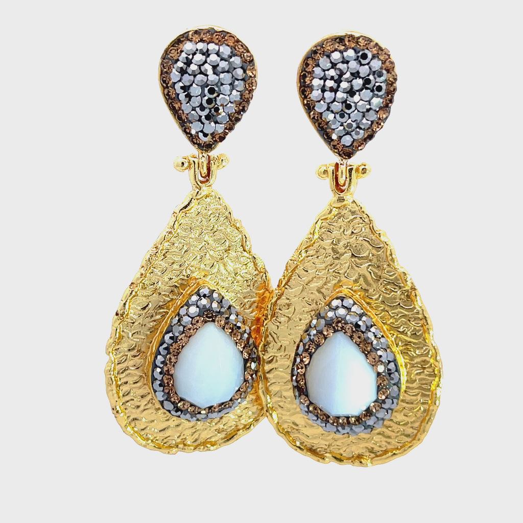 Teardrop Gemstone & Crystal Brass Dangle Earring