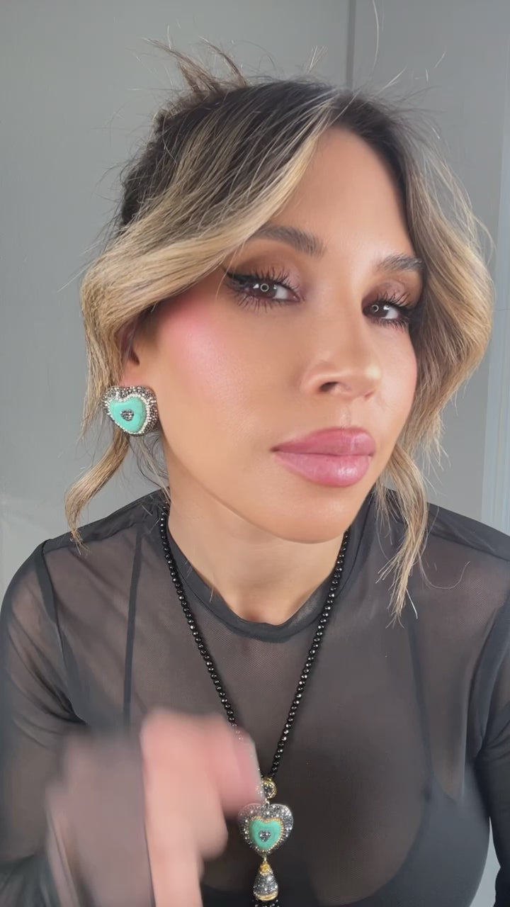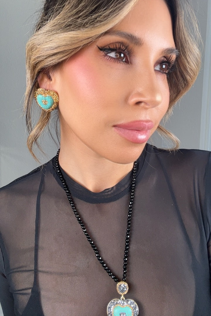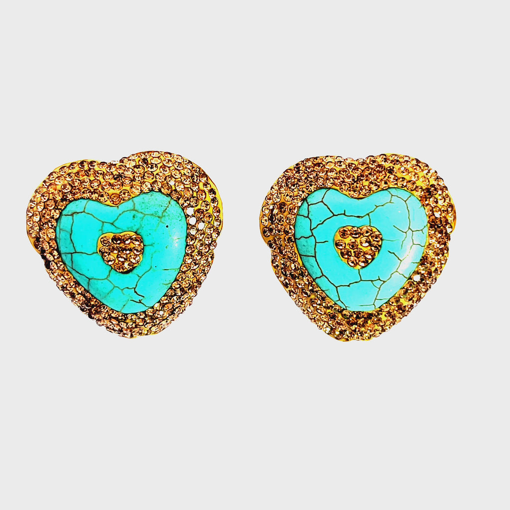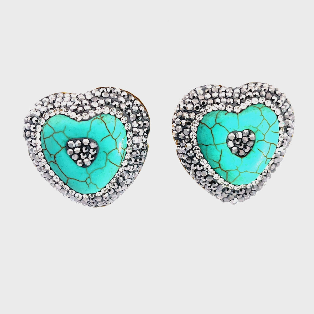 Turquoise Heart Crystal Stud Earrings