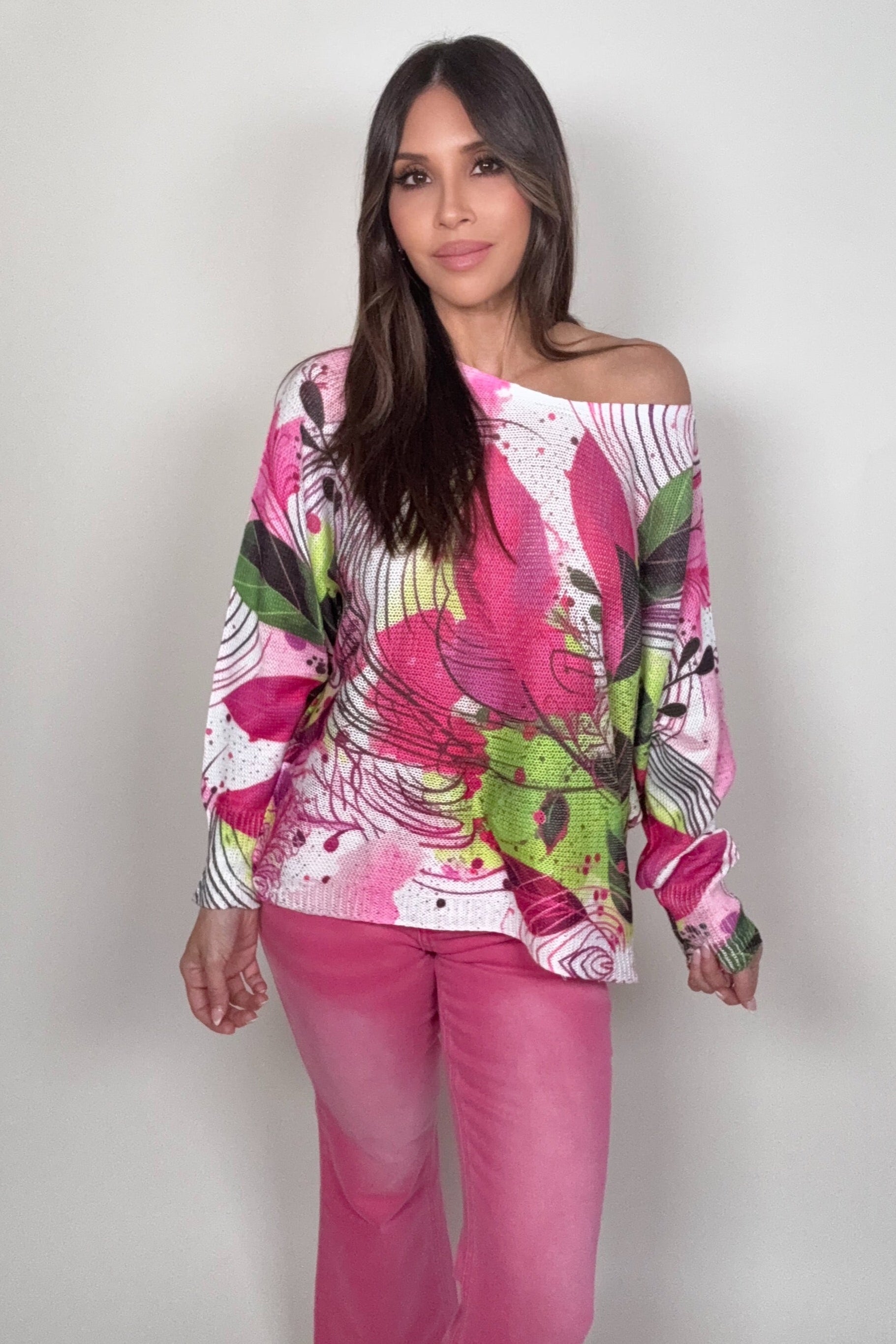 Take on any adventure with ease and style in our Pink Flower Neck Knit Printed Sweater! Featuring a unique print that is sure to make a statement, this sweater offers both comfort with one size and boldness. Perfect for those who dare to be different!