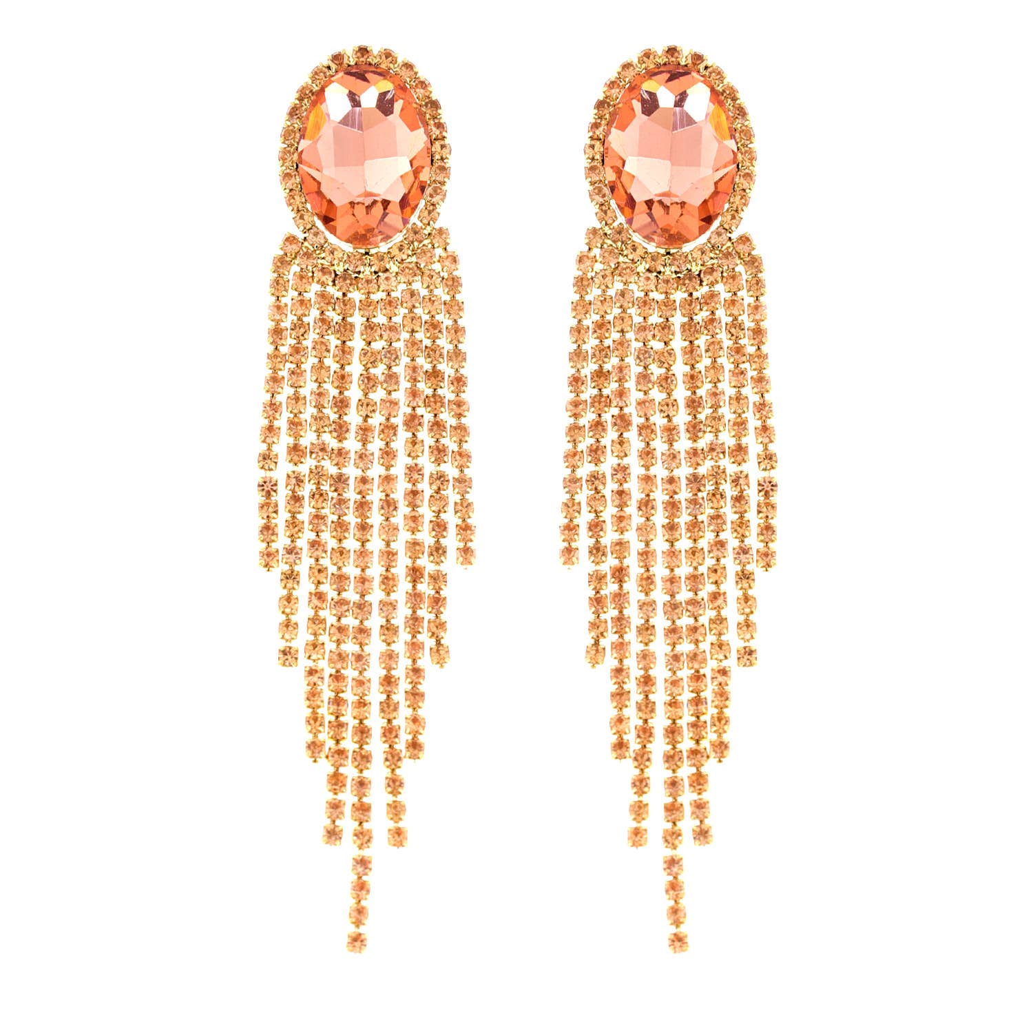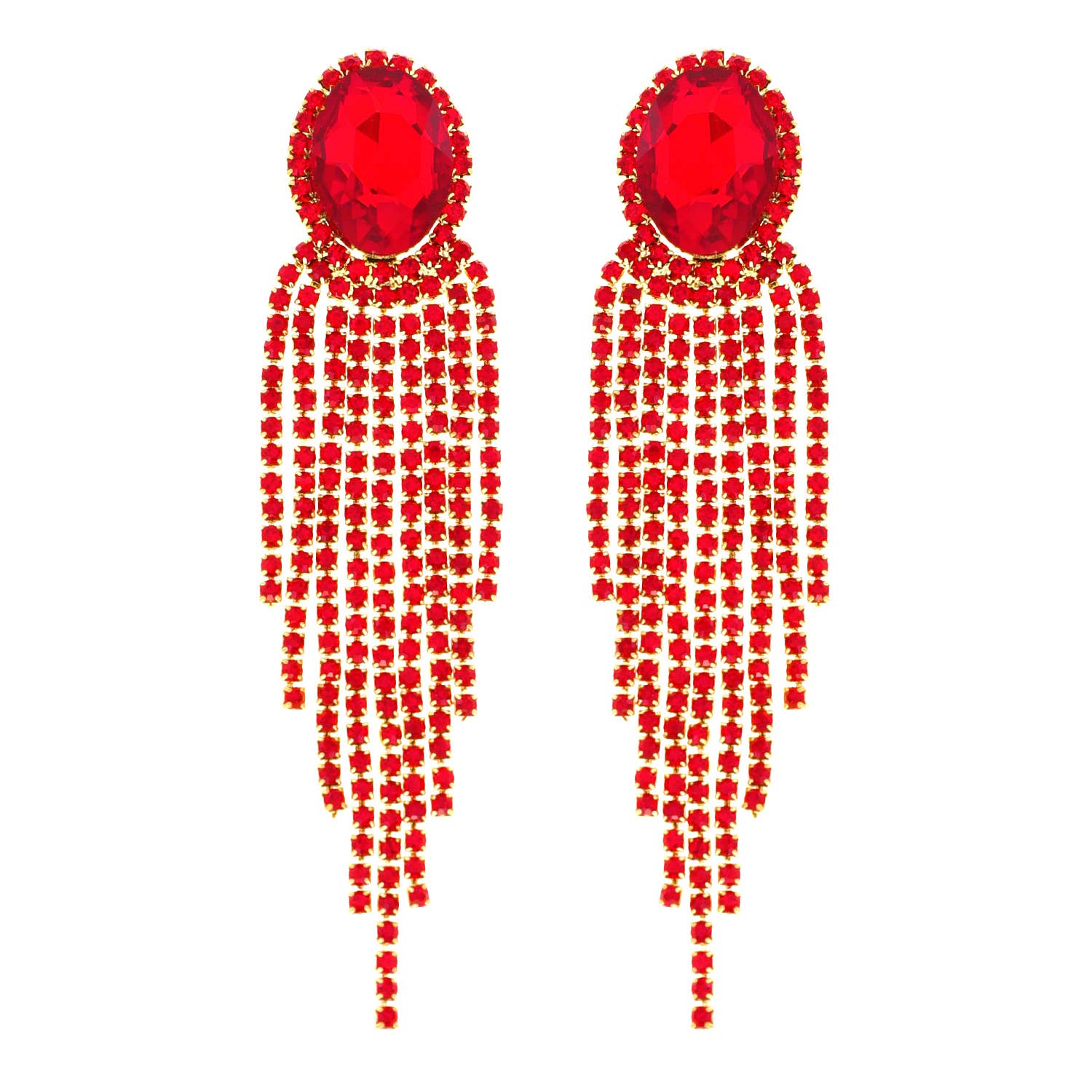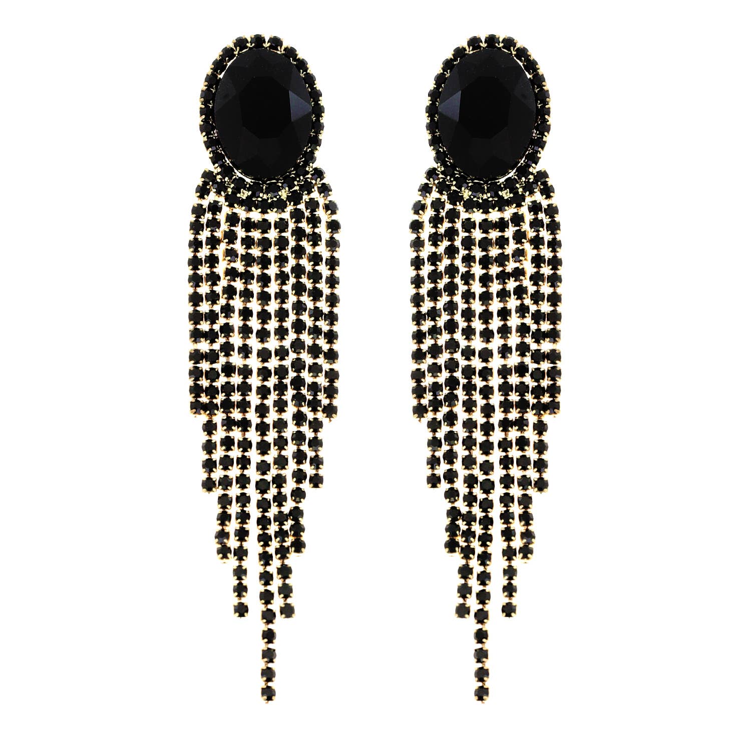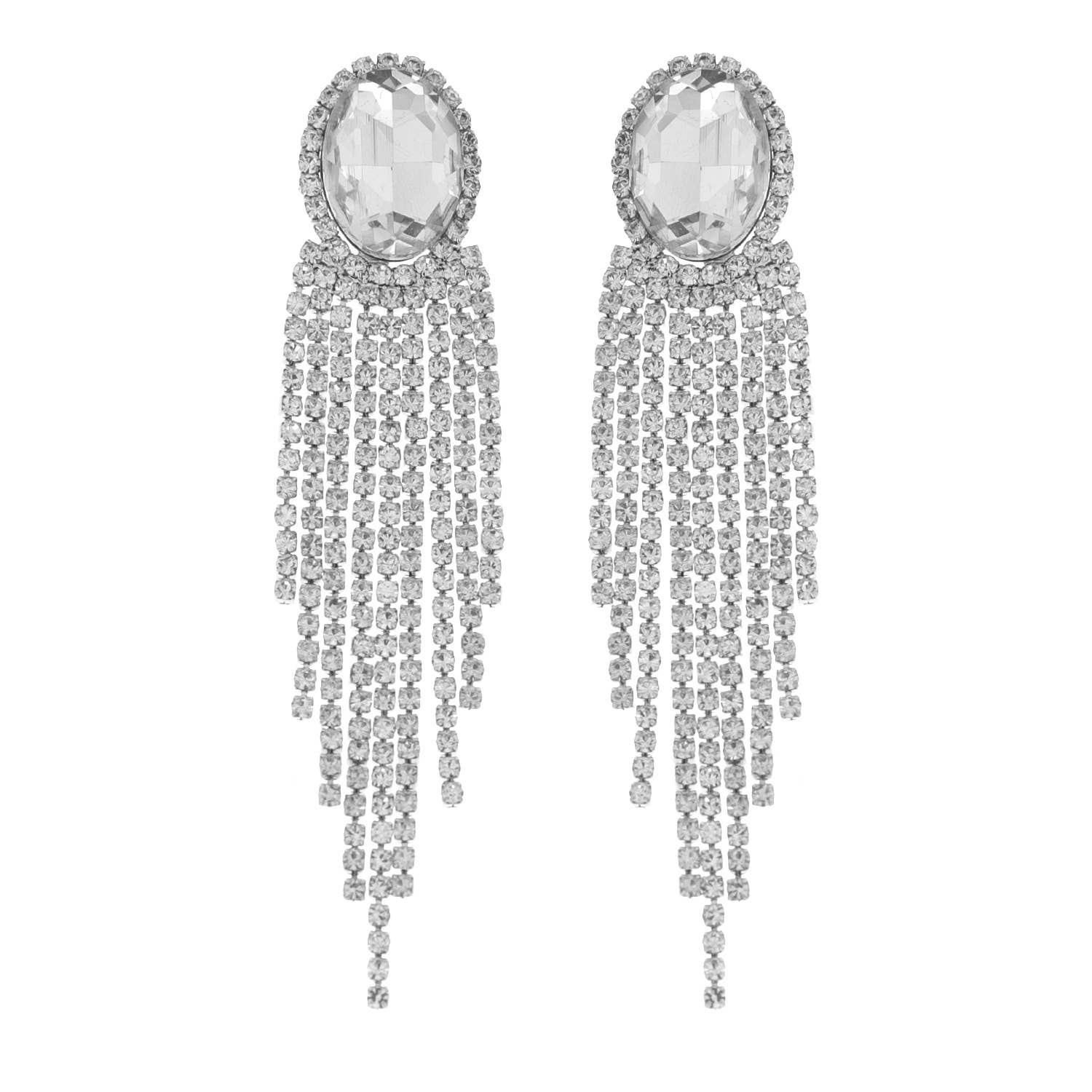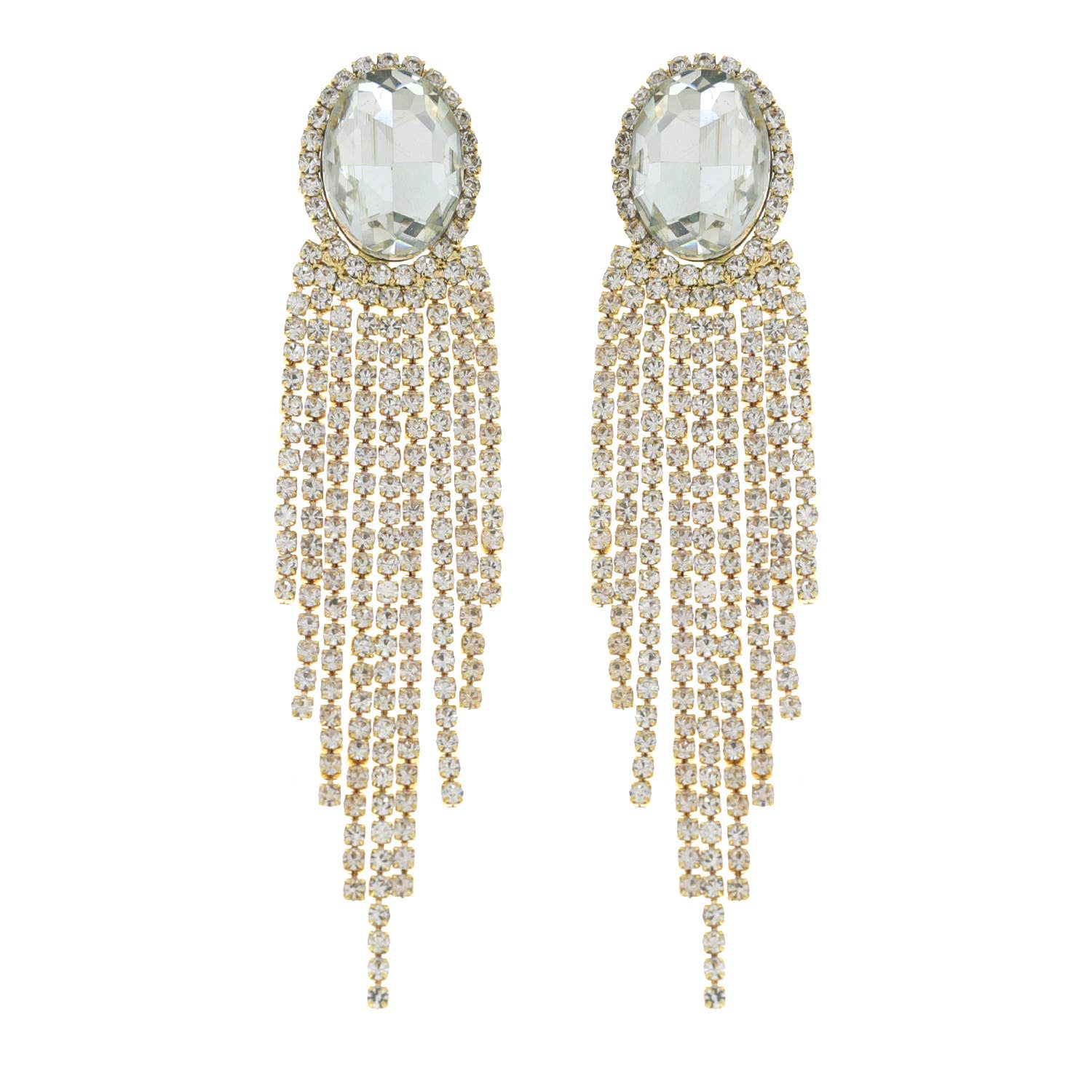 Oval Rhinestone Crystal Halo Drop Tassel Earrings