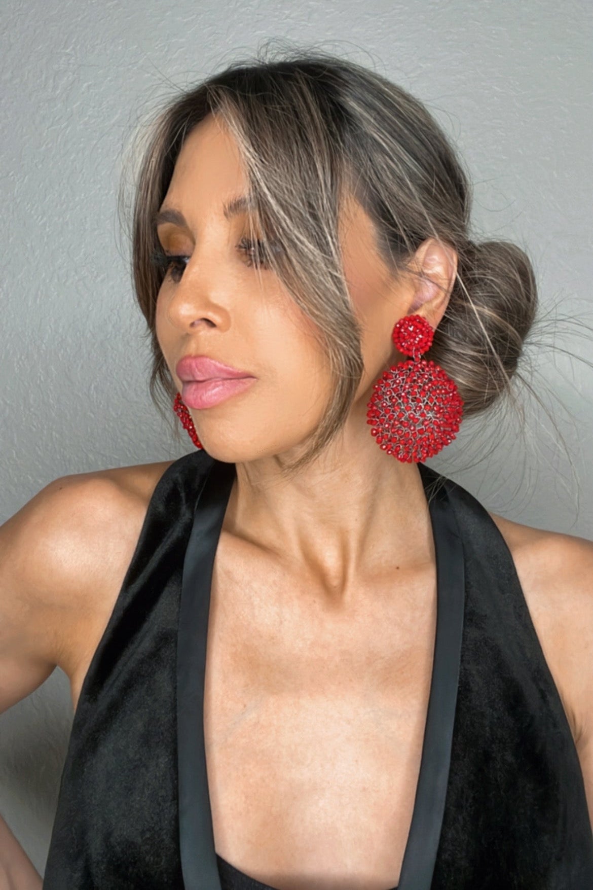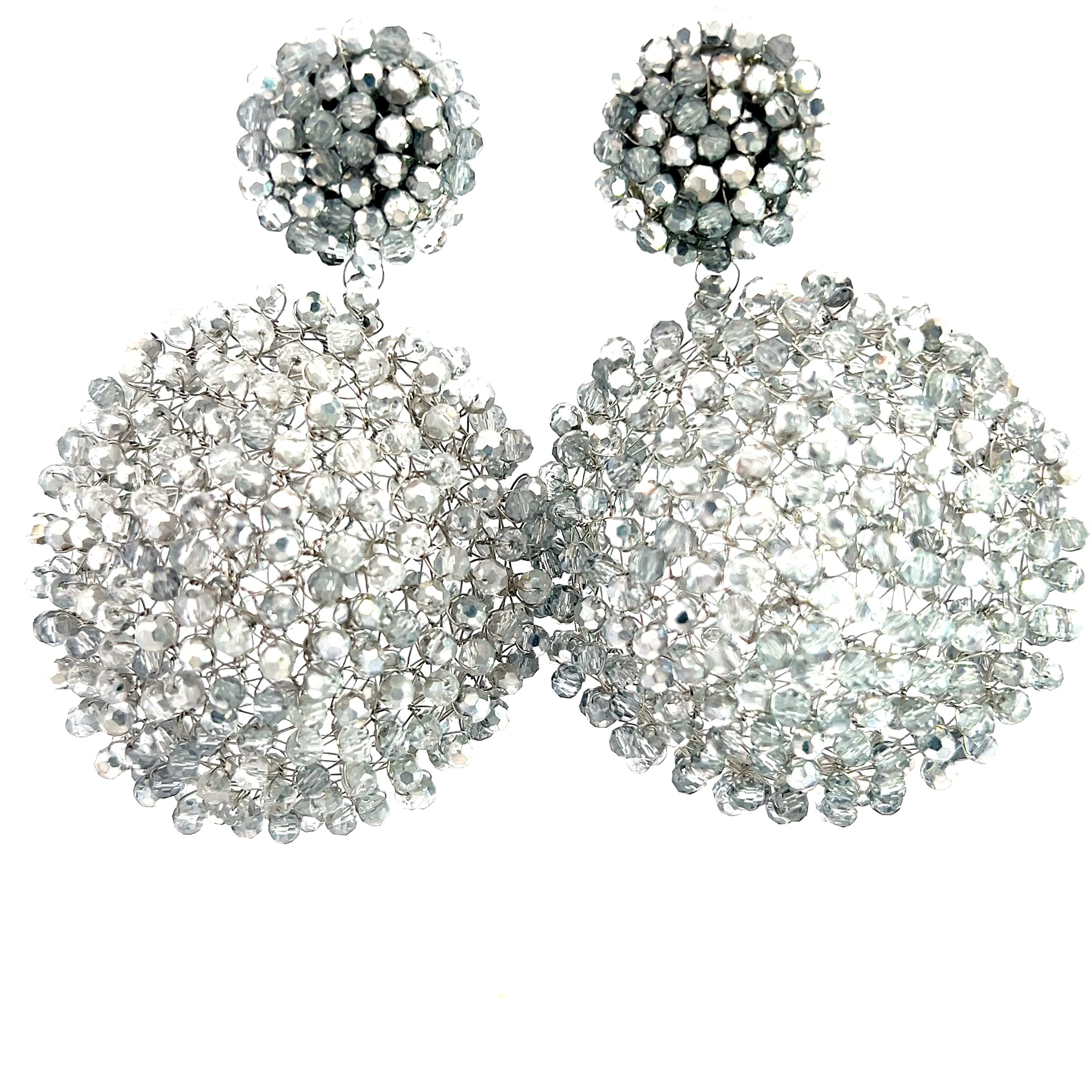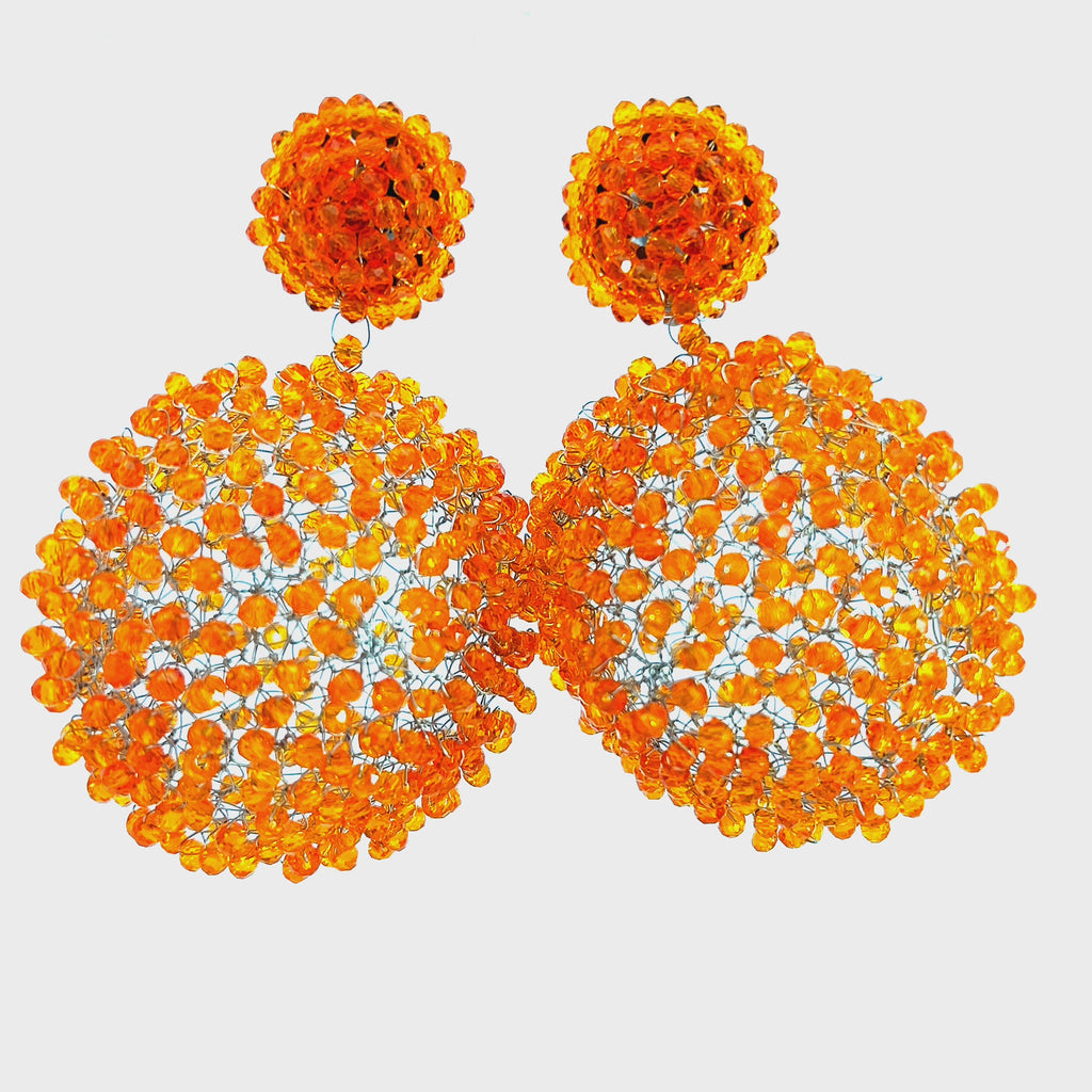 Lightweight and comfortable, our Crystal Sphere Statement Clip On Earrings in a unique sphere clip-on design adorned with vibrant crystals, add a touch of flair to your look making these earrings perfect for both casual and formal occasions.